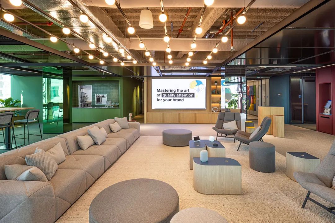 作为核心功能区,Ted Talk空间配备两套独立定制家具系统:日常模式下,配置可移动工作站与隔音会议舱;活动模式时,收起工作站后,展开隐藏式观众座椅与舞台设备。灵活的家具配置使1,100平方米的空间可同时满足50人日常办公与300人大型活动需求,成为办公环境适应性设计的标杆案例。