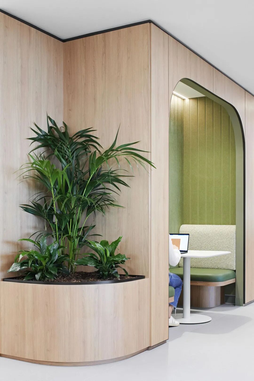 走进这个医疗办公空间,最令人印象深刻的是无处不在的自然元素。定制的原木色办公家具表面保留了木材的天然纹理,接待区的背景墙用3D打印技术复刻了墨尔本本地森林的光影效果,甚至员工储物柜的拉手都设计成树叶形态。这种亲生物设计并非简单的装饰,而是经过医疗心理学验证的压力缓解方案——研究显示,自然元素的引入使员工的工作满意度提升22%,患者候诊焦虑指数下降37%。