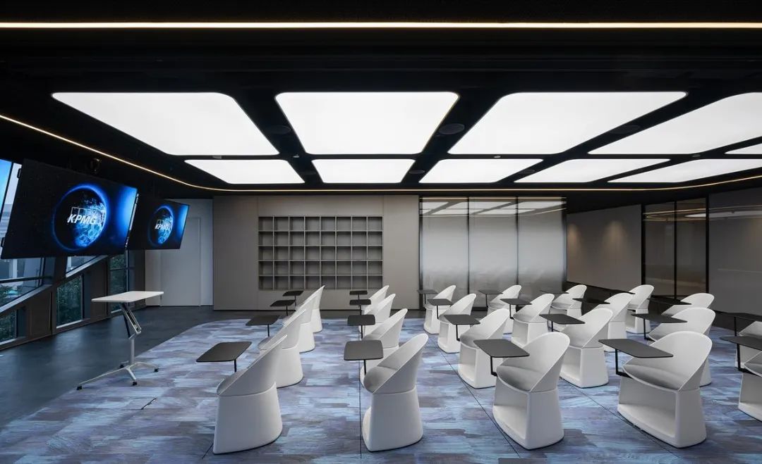 创想中心作为毕马威全国培训中心,其办公环境设计的核心在于「灵活性」。由六个大小不一的高灵活度空间组成,每个空间可单独或组合使用,这得益于其定制化的办公家具系统。可折叠的隔断墙、可升降的培训桌、模块化的座椅,这些家具设计使得空间能够在几分钟内完成从独立教室到大型报告厅的转变。装饰设计上,每个空间采用不同主题色的软装与灯光,既保持了整体风格的统一,又赋予了每个子空间独特的个性,完美诠释了「以家具定制驱动空间功能变革」的设计理念。