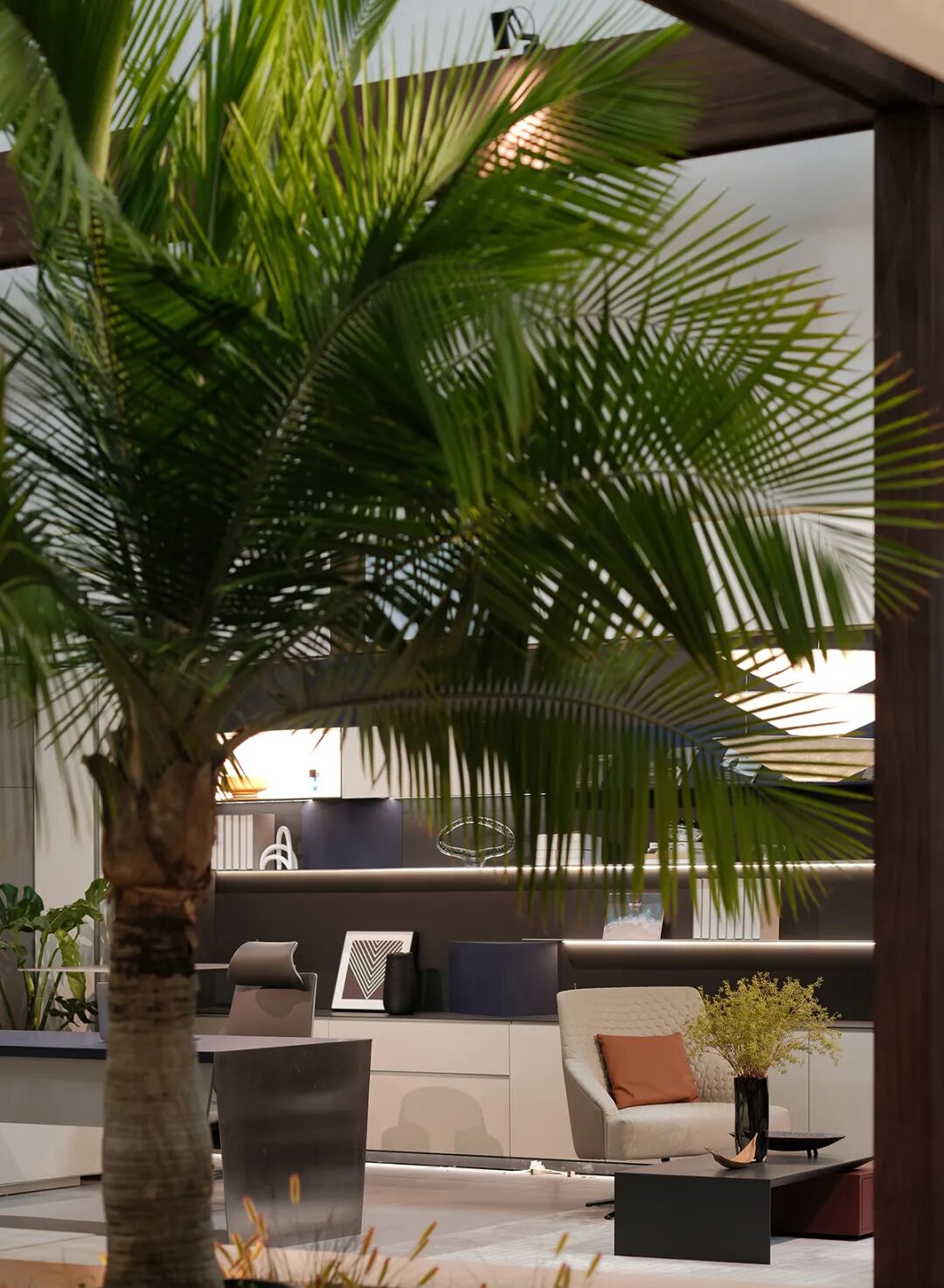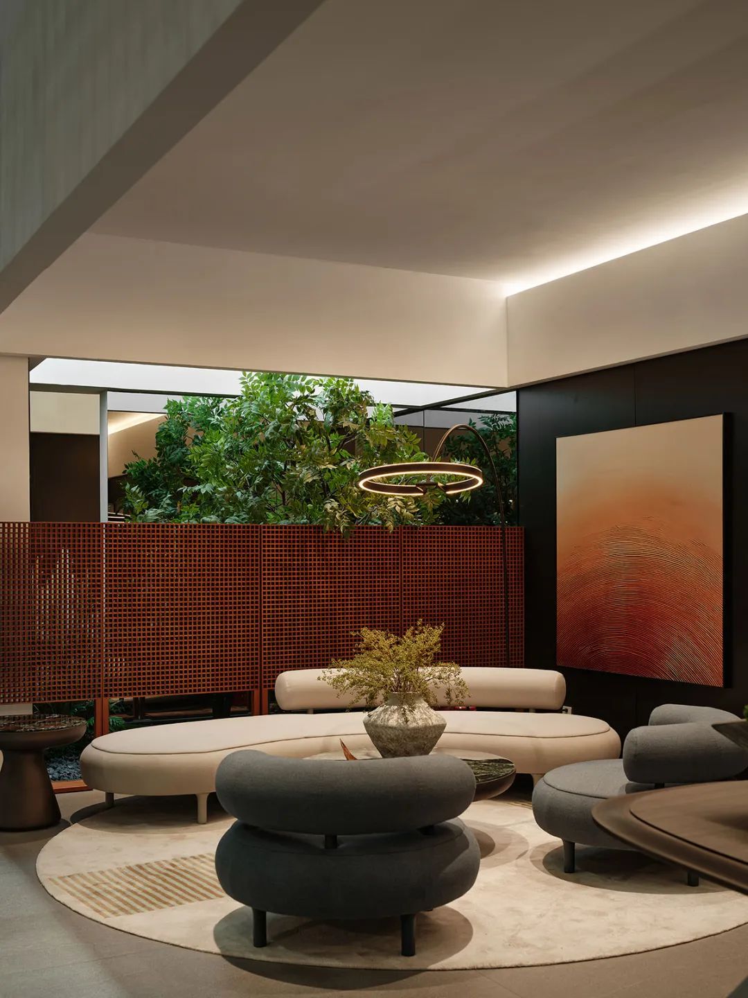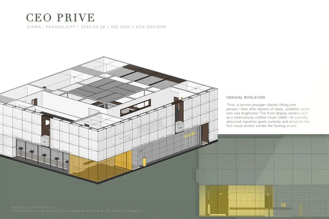 2025年广州琶洲CIFF家具展上,一个450平方米的展位正以截然不同的姿态吸引着参观者的目光。这就是由UCE右见设计团队主设计师薛见带领杨宇宁、陈功磊、刘广涛、任美臻、张成、何向洲打造的天悦CEO PRIVE展位。与周围喧嚣的展位形成鲜明对比,这里仿佛一片静谧的绿洲,让人们在繁忙的展会中找到片刻安宁。