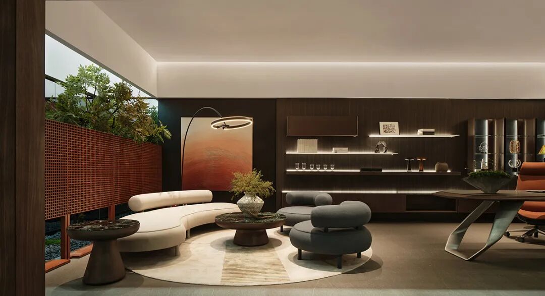 在这个空间里,办公家具不再是冰冷的器物,而是等待被手指温度唤醒的对话者。当人们坐在卡座上细数穿过格栅的光斑,或手指抚过陶罐裂纹时,仿佛能听到办公家具的窃窃私语。