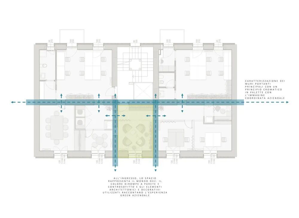 OX2米兰办公室的设计从一开始就确立了明确的核心——让空间成为可再生能源理念的立体表达。作为欧洲领先的可再生能源开发商,OX2 AB将瑞典总部的可持续基因注入米兰市中心这栋由住宅楼改造的办公空间。Stefania Micotti architetto设计团队面临的首要挑战是既有建筑格局的限制:无法进行大规模平面改造,必须保留原有地板和天花板结构。