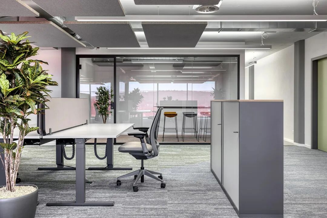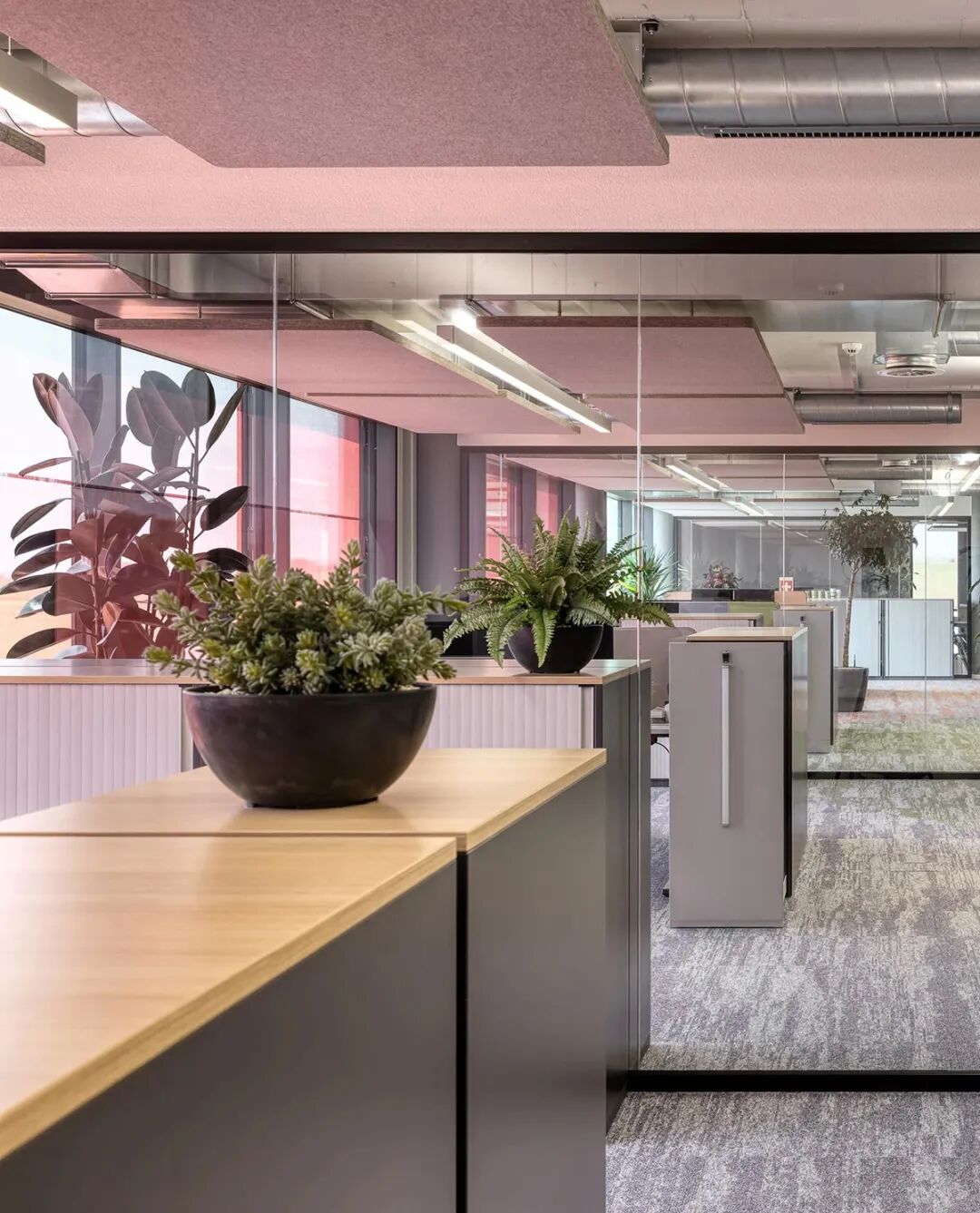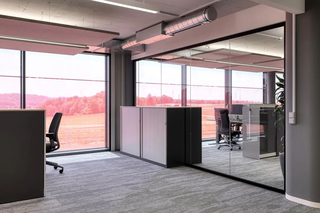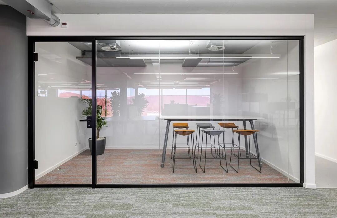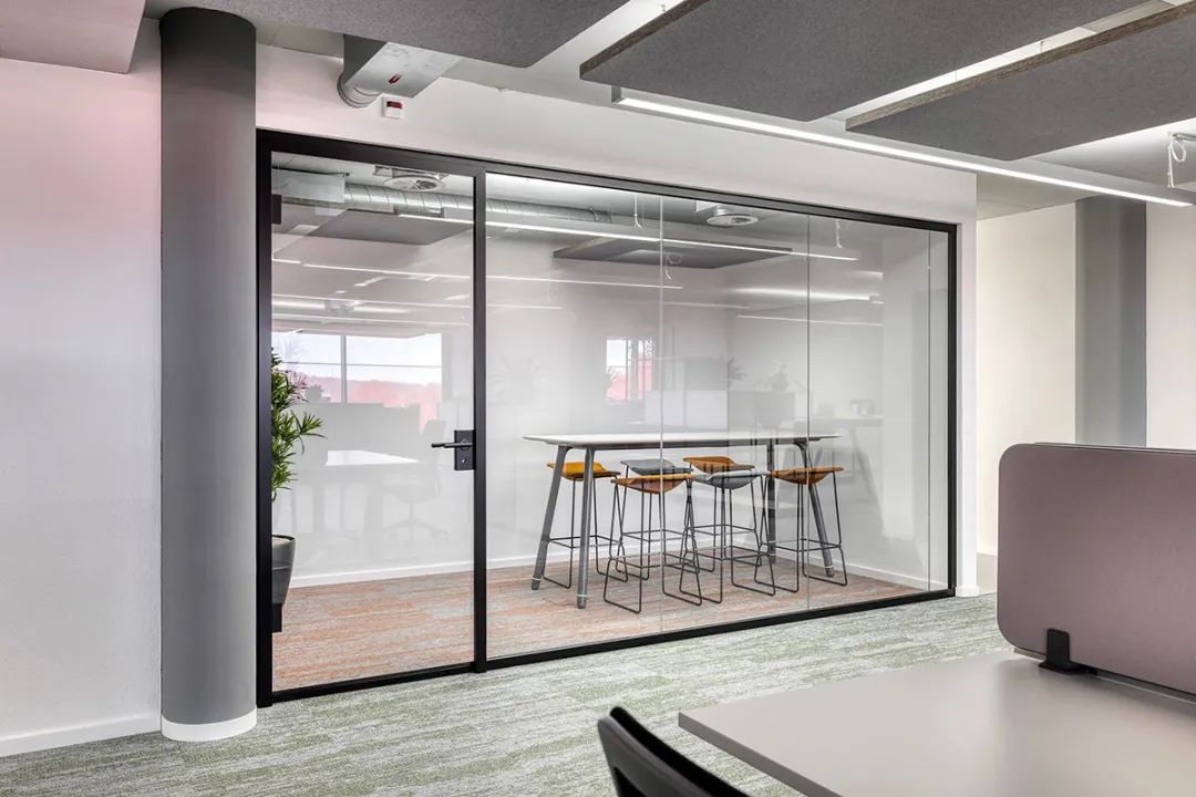 更巧妙的是“协作缓冲带”设计:团队工作站旁设置全高落地玻璃结构的交流室,既保证自然采光与空间通透,又能将小组讨论的声音锁定在特定区域。深黑色粉末涂层的fecoplan玻璃型材隔墙,以工业风美学强化了这种“透明的私密感”——你能看到同事的专注状态,却不会被谈话声打断思路。