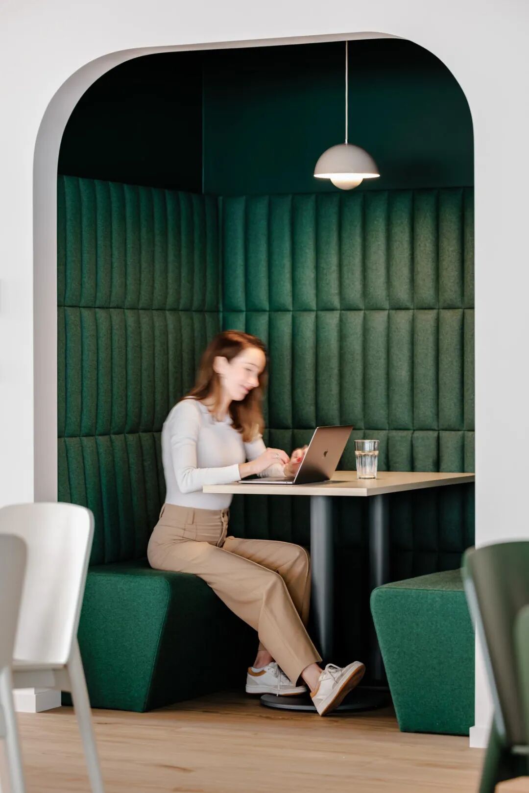 办公环境设计打破传统桎梏:开放式布局中,三角形办公桌按特定角度排列,确保1.5米舒适间距的同时促进协作;独立照明系统为每个工位打造"光的私人领域",实现专注与共享的空间平衡。设计师Zuzanna Jaszczuk强调:"空间应同时鼓励协作并尊重独处。"