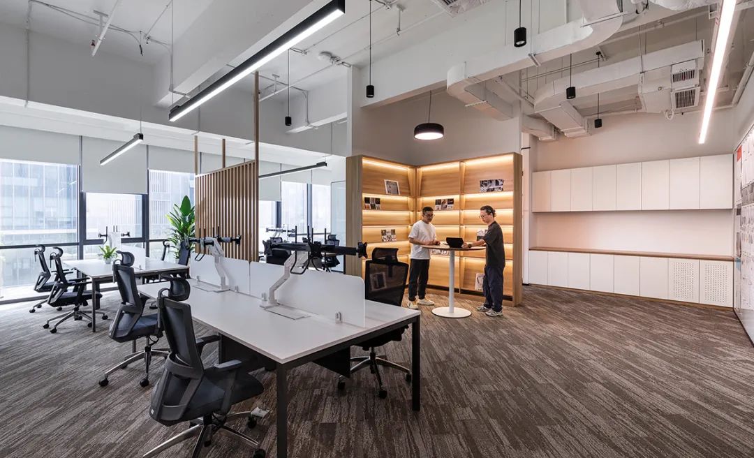 设计师利用线型灯光勾勒出空间流动的艺术美感,不同材质及色彩呈现出丰富的视觉质感。从视觉到触觉的多感官体验,让使用者在光影变化中汲取工作与生活的灵感。