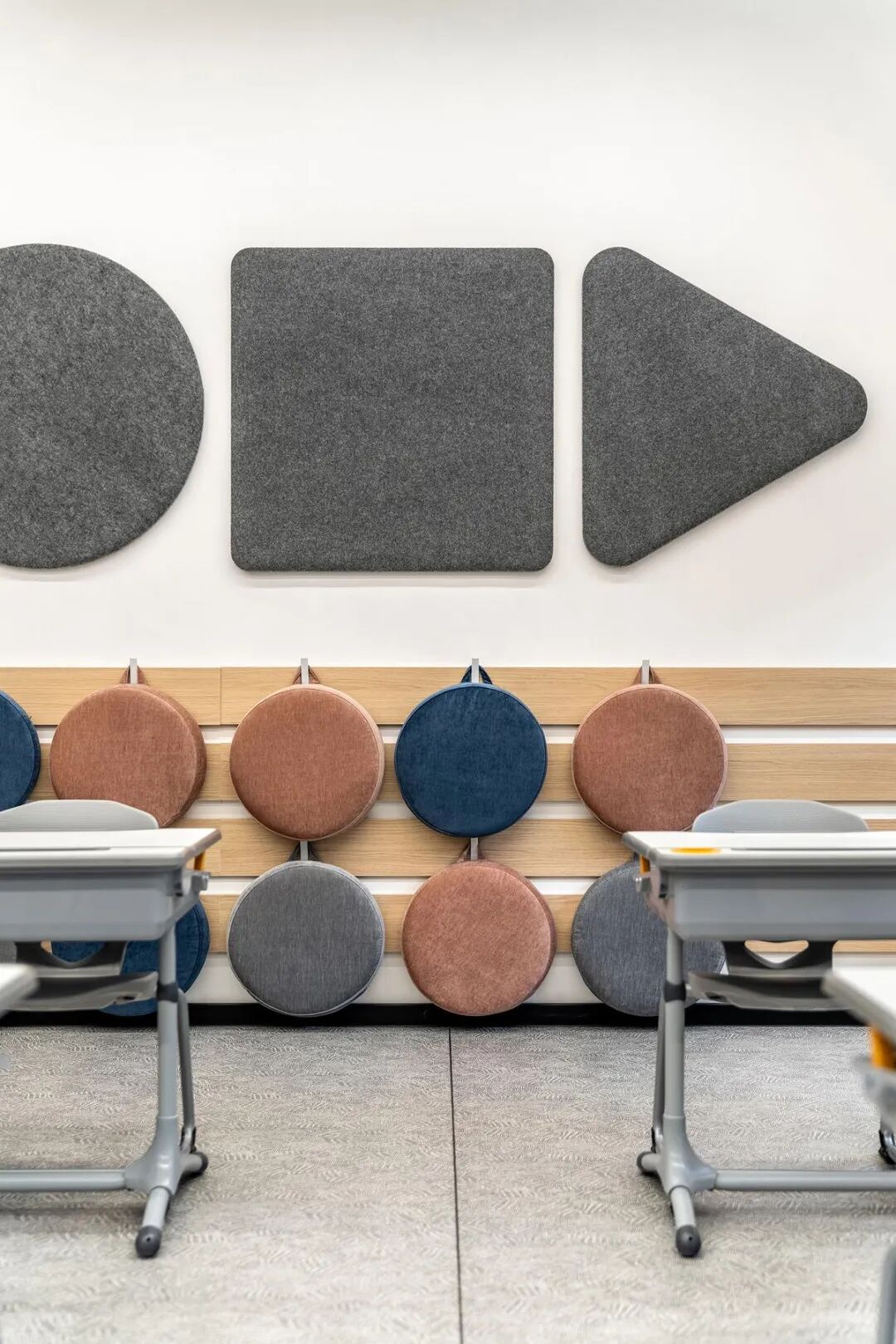 关键词:家具,学生教室,教育/小学,时尚简约,高端精美,粉彩配色,环境导视系统设计,灵活多元,校园家具