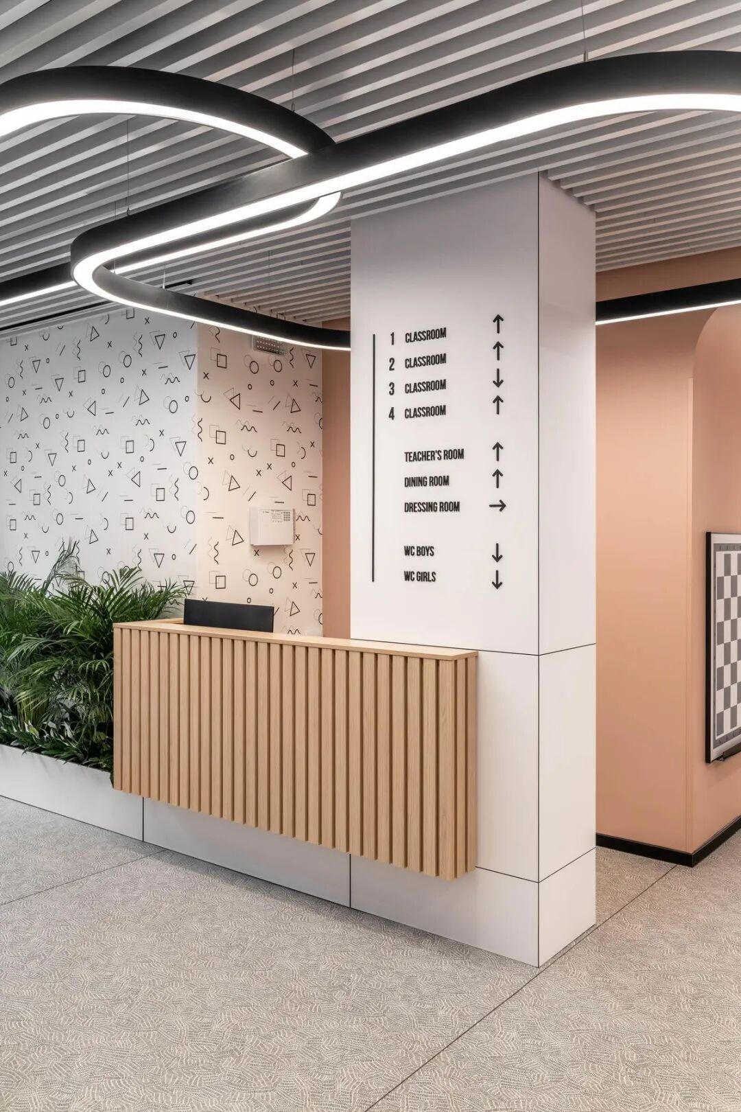 在乌克兰第聂伯罗市,一所名为HELLO SCHOOL的私立小学以400平方米的空间,重新定义了现代教育建筑的可能性。作为儿童之家项目的延伸,它延续了前者对成长环境的深度思考,同时注入了更成熟的设计语言,打造出一个既符合儿童心理又具备高端质感的学习场域。