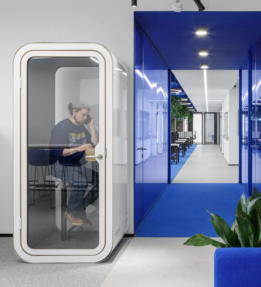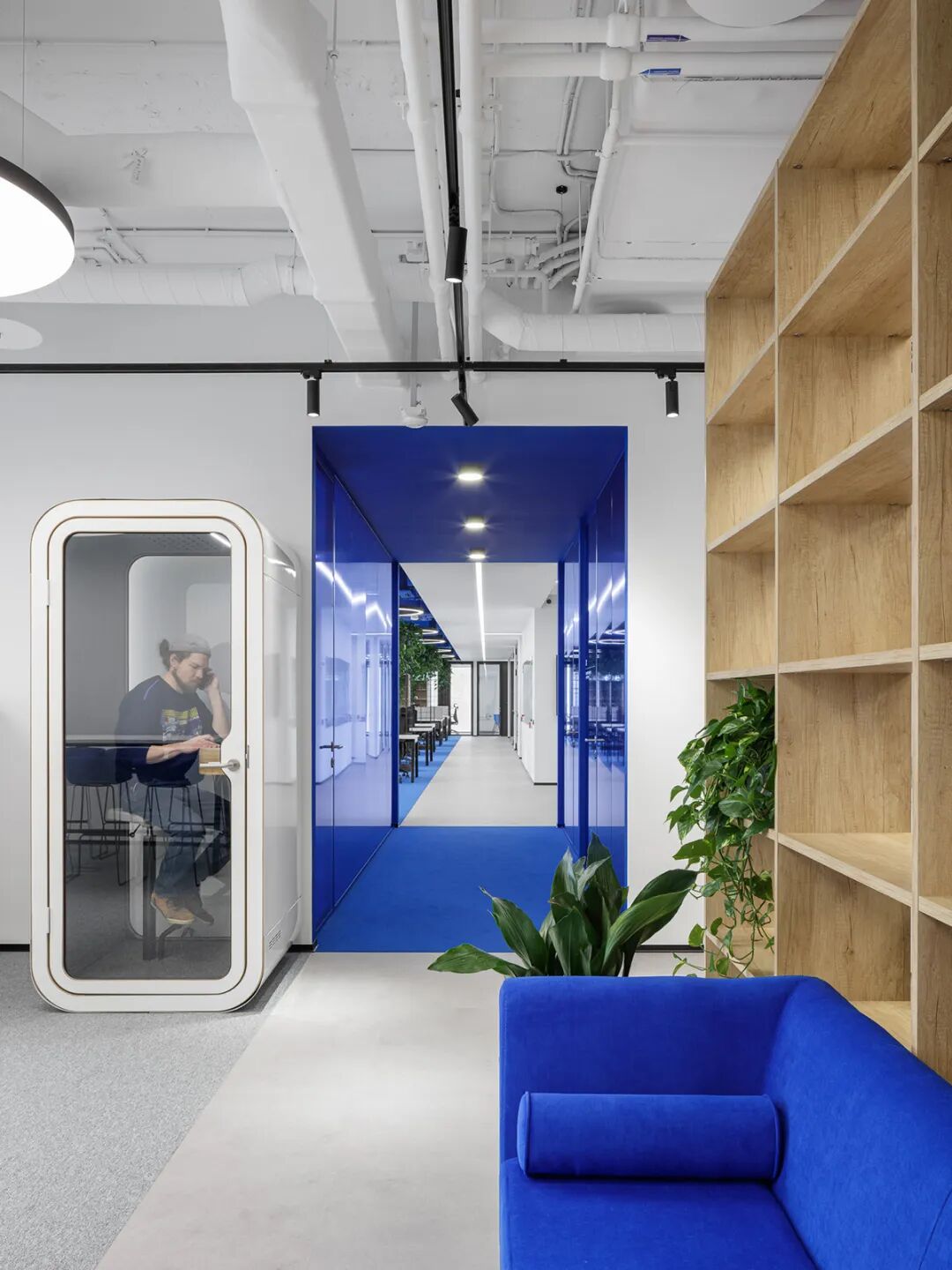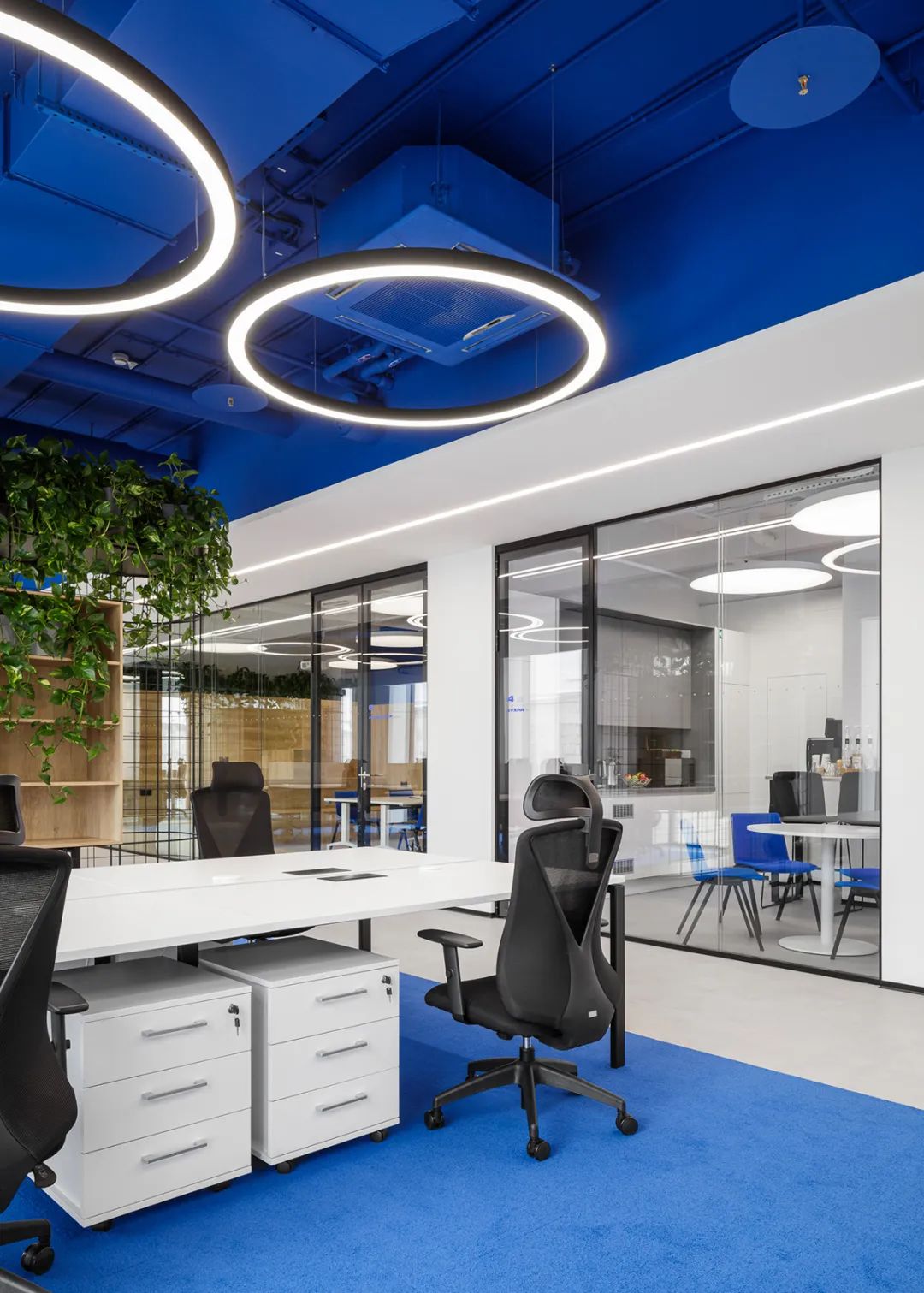 此外,绿植藤蔓的融入为冷静的蓝白空间注入生机,提升了环境的舒适度与愉悦感。研究显示,良好的办公环境设计能显著提升员工的幸福感与生产力——在本案中,通过对色彩、光线、家具与布局的整体把控,不仅塑造了一个时尚唯美的美学空间,更构建了一个能激发灵感、提升效率、增强归属感的办公场所。对于 INNOTECH 这样的科技企业而言,这处空间无疑成为了支持其创新文化与持续发展的重要基石。