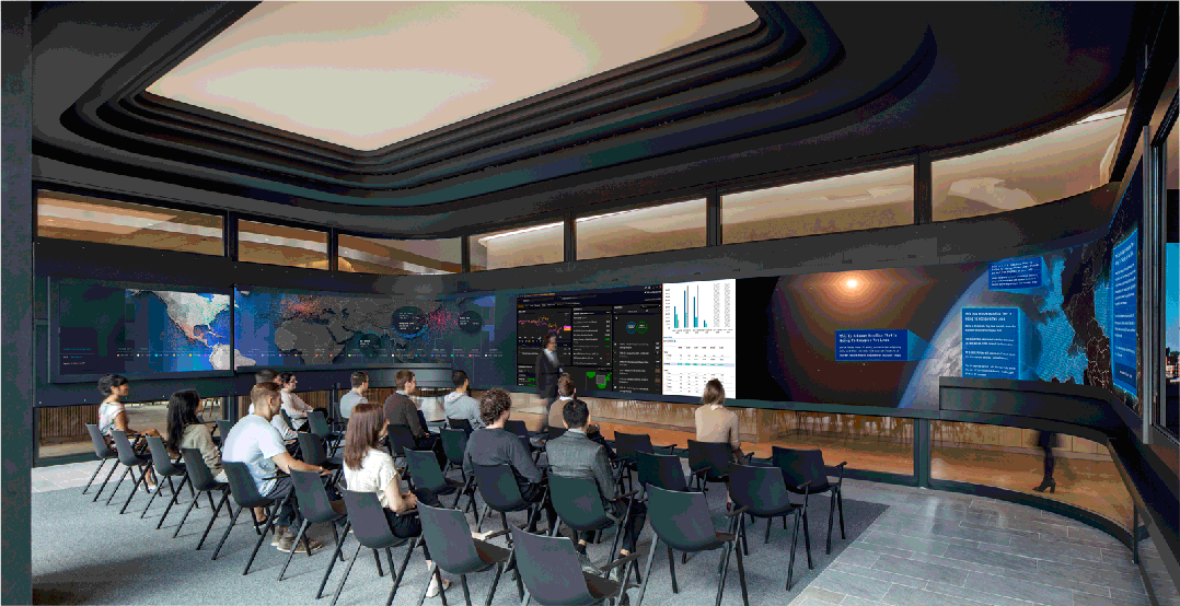 这种办公环境设计将科技与协作无缝连接,极大提升了信息共享效率与空间利用率。