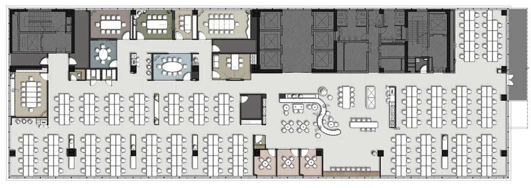 值得一提的是,整个办公空间的流动性设计。通过巧妙的办公家具布局和动线规划,不同功能区域自然过渡,既保持了相对独立性,又确保了整体空间的连通性。这种设计不仅提升了空间利用率,还无形中促进了员工间的跨部门交流,为创新思维的碰撞创造了条件。