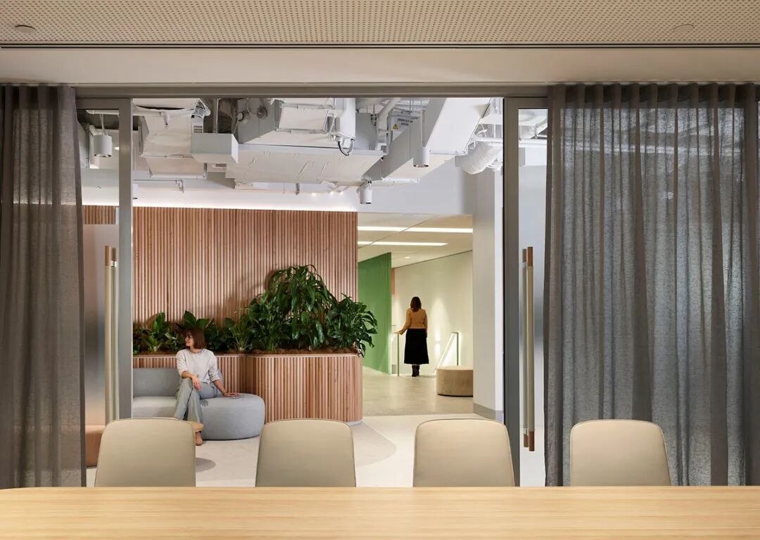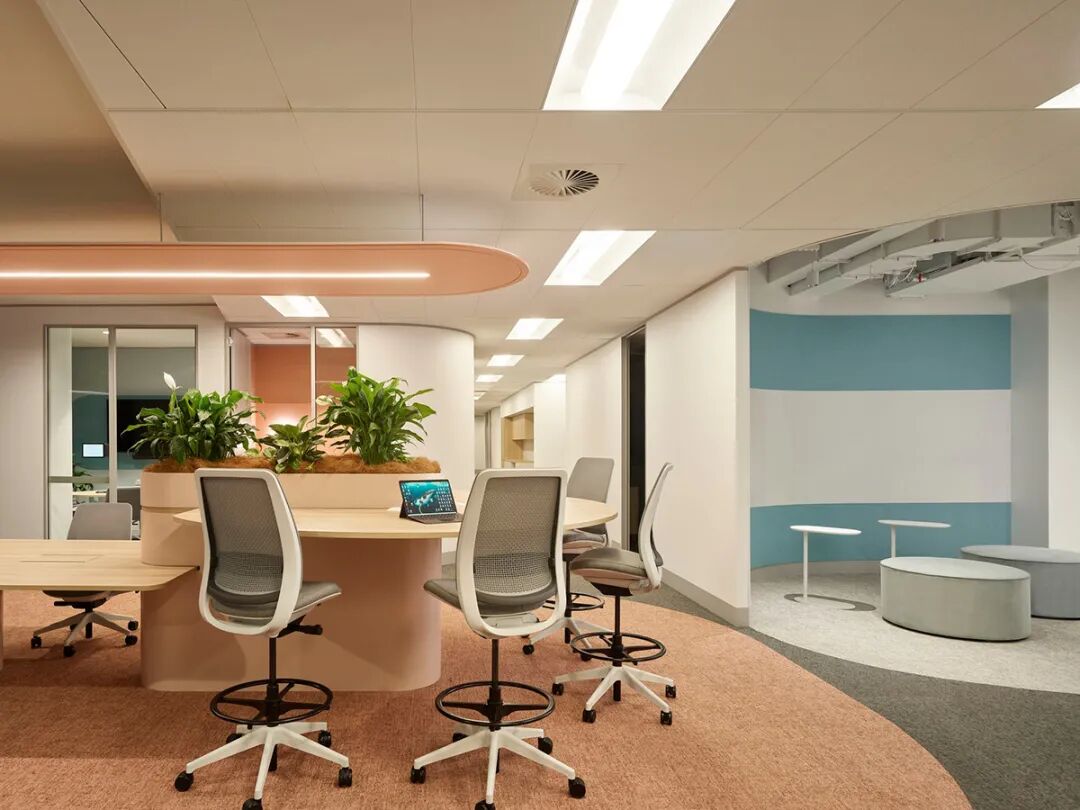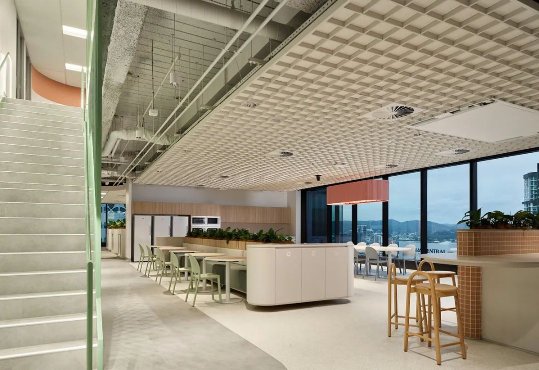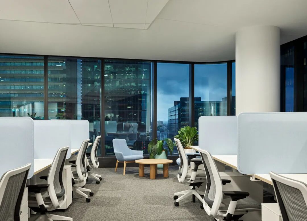ESG理念深度融入空间肌理。项目采用全生命周期碳管理,90%以上材料来自澳大利亚本土,并应用Steelcase智能升降系统和可再生能源。这种可持续设计不仅呼应能源企业的核心价值观,更树立了行业低碳办公的新标准。