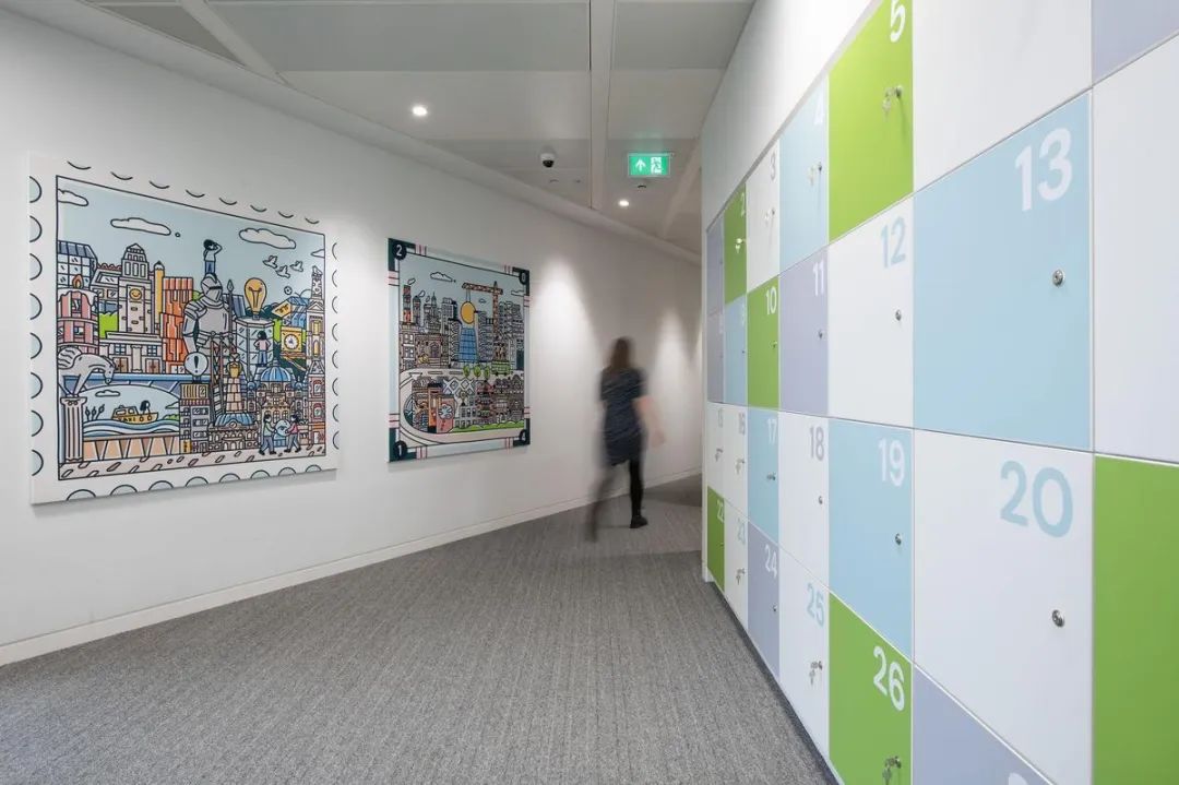 在律师事务所环境设计中植入地域文化基因,是本案最具温度的设计策略之一。设计团队在空间中大量运用天然木材及高品质本地材料,让定制办公家具与硬装体系呈现出有机的整体感。更值得称道的是,DENTON与利兹大学一位艺术专业学生合作,为空间量身创作了独家艺术装置——这一举措不仅为办公环境设计注入了真实的社区温度,也让Freeths的利兹团队对这个空间产生了更深的情感认同与归属感。
