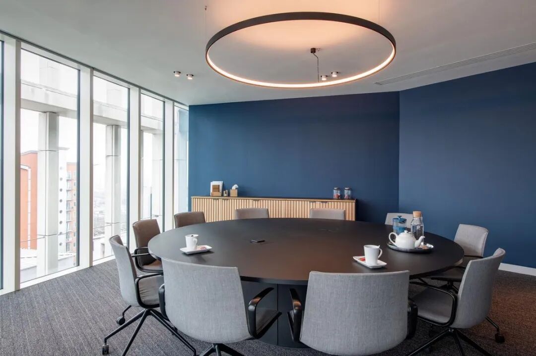 DENTON设计团队为英国领先律所Freeths LLP的利兹办公室打造了一套系统性的律师事务所环境设计方案。项目总面积1,068平方米,以“现代、可持续、灵活多元”为核心设计主张,通过精细化的办公环境设计规划和全套定制办公家具配置,将一个基础毛坯空间彻底转化为能够承载律所品牌文化、提升团队凝聚力、并高效服务客户的专业工作环境。这一项目也延续了DENTON团队与Freeths在谢菲尔德办公室合作的成功经验,双方在深度协作中将设计愿景精准落地。