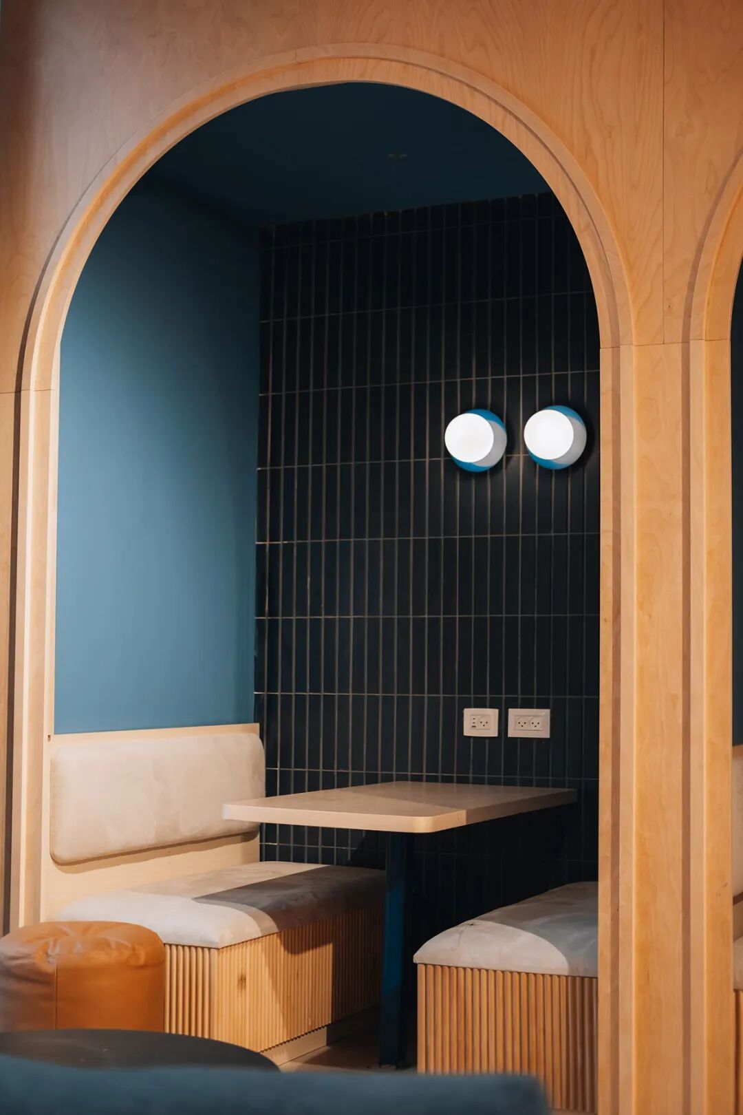 本案在校园公共环境设计中,注重差异化空间叙事。静谧的车厢座自习区配备专业学校家具,满足深度学习需求;社交枢纽则采用模块化沙发与工业风软座,鼓励交流与互动。流动式布局使学生可随时切换学习与休闲状态,打破传统学生宿舍的固定模式,充分体现学生宿舍家具与公寓家具的灵活性与多样性。