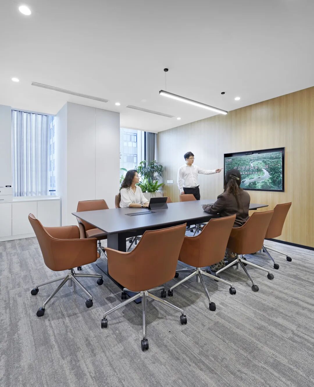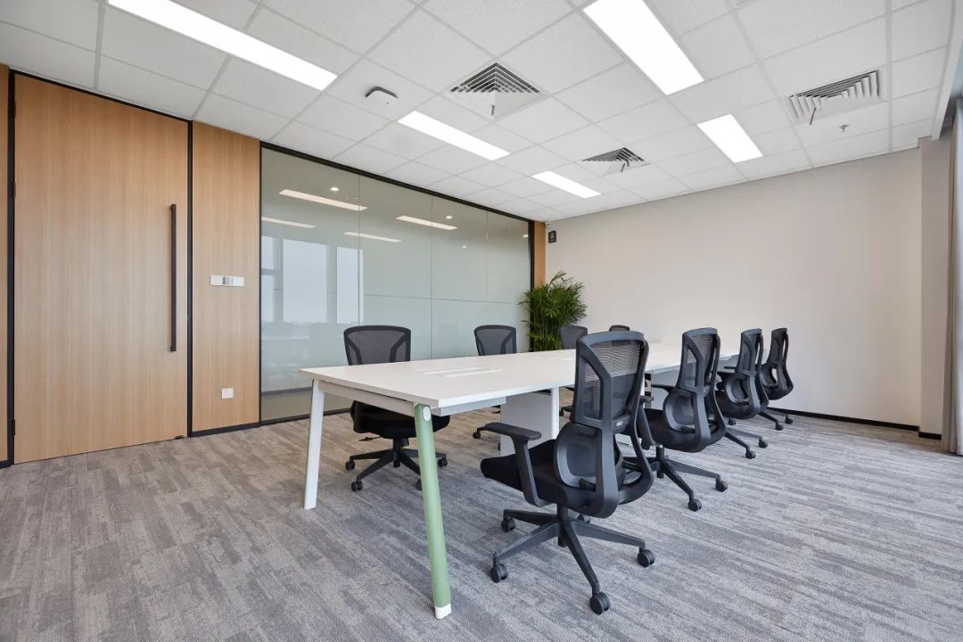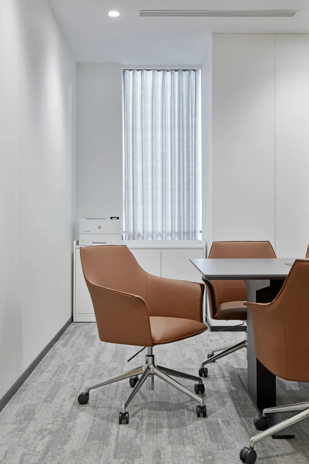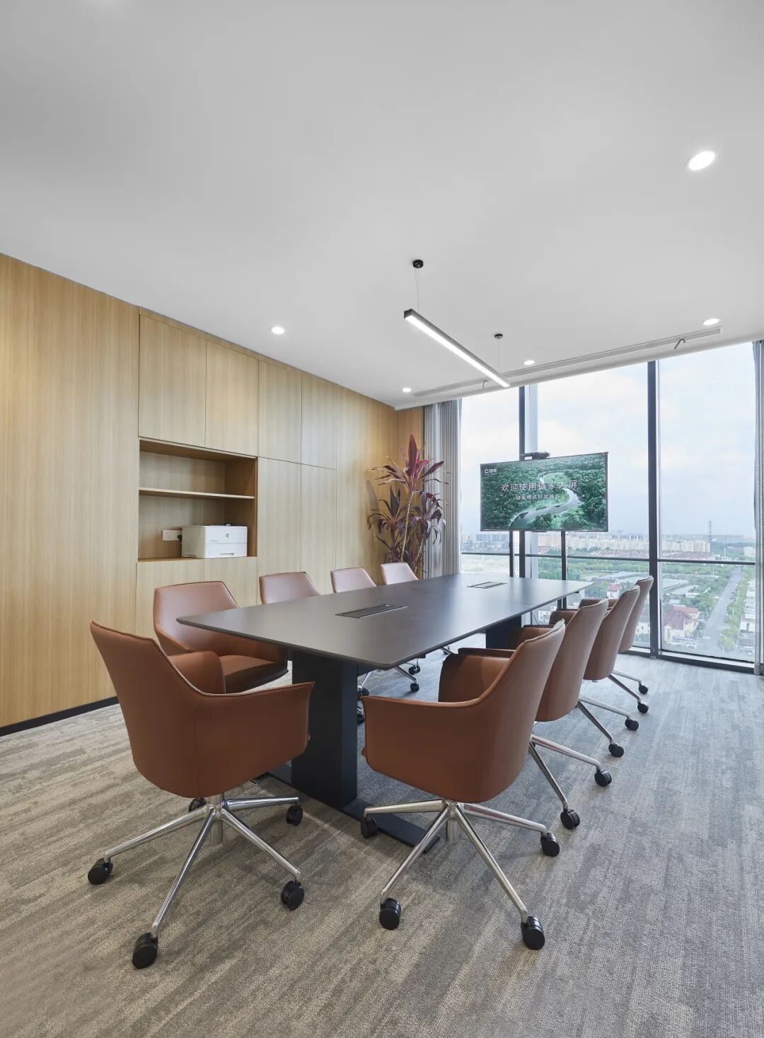 It is worth mentioning that all furniture in the shared office area adopts a unified modular design: the thickness of the desk board is uniformly 25 millimeters, the height difference of the mobile unit is controlled within 3 centimeters, and even the spacing between power sockets is maintained at a standard interval of 60 centimeters. This highly standardized customization system ensures both visual unity and compatibility between different furniture modules, keeping the space in an orderly yet dynamic state.