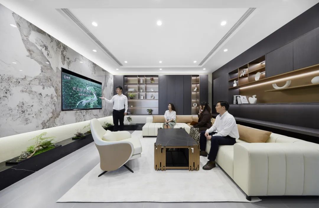 For this purpose, the team designed four themed signing rooms, each corresponding to a different furniture system: the "Classic Business Type" uses a dark brown solid wood conference table, paired with high back leather chairs, and the desktop is embedded with an intelligent signing system, supporting electronic signatures and document synchronization; The "warm home type" imitates the scene of a family study, with a customized L-shaped desk length of 3.2 meters. One side is the signing area, and the other side is equipped with a tea cabinet and a small refrigerator, creating a relaxed atmosphere of "signing at home"; The "natural minimalist style" mainly features light colored oak furniture, with moss ecological panels on the walls and a customized oval conference table. The table is hidden with a warm air fan to maintain a comfortable temperature of 26 degrees Celsius in winter; The "modern technology type" is equipped with a 4K adjustable display screen, and customers can view the 3D model of the property through gesture control. The seats are designed with tactile feedback and can automatically adjust the backrest support according to changes in the customer's heart rate.