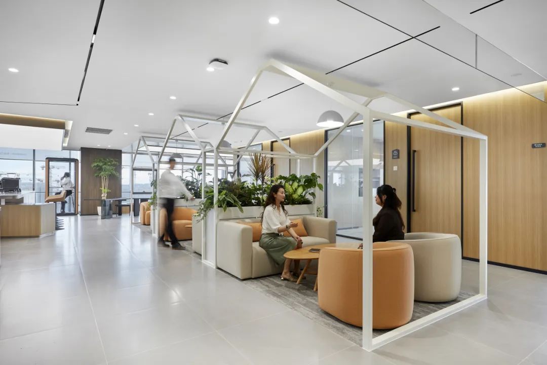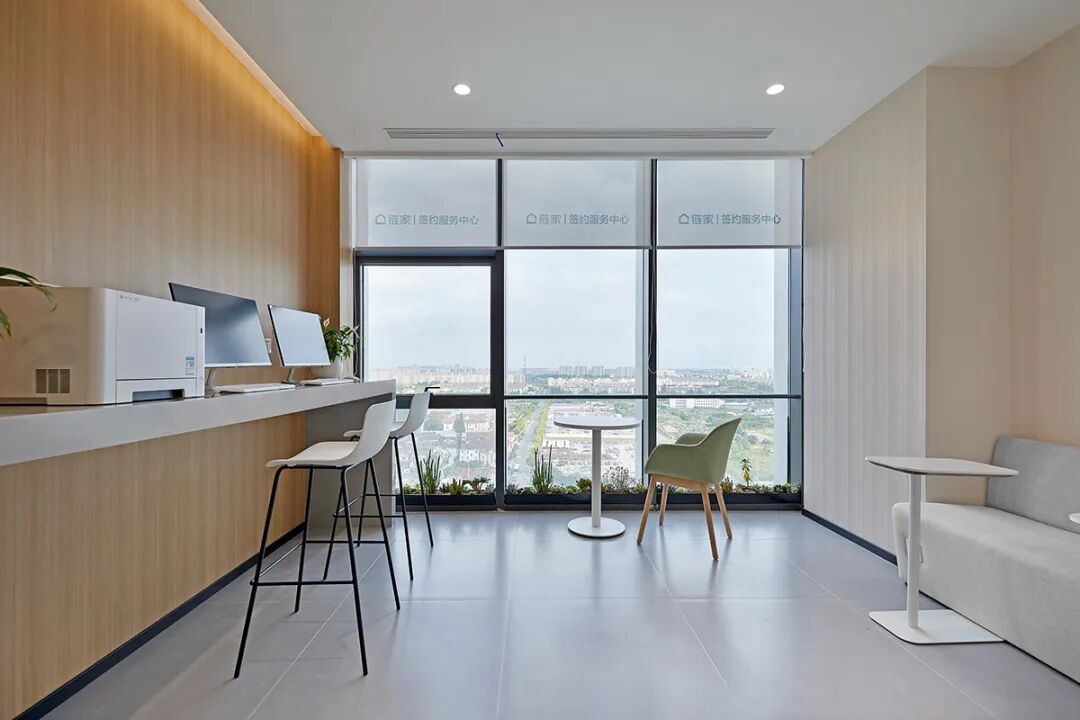 Here, every customized piece of furniture is a node in the service process: the curved reception desk at the front desk dissolves the sense of unfamiliarity, the modular furniture in the multifunctional area supports scene switching, the circular island system in the shared office area promotes communication efficiency, and the emotional design of the signing room carries the psychological needs of decision-making moments. These furniture elements are intertwined with keywords such as biophilic design concepts, social attribute creation, and open office practices, collectively forming the DNA of Lianjia's new generation service space.