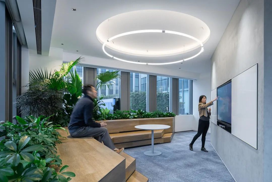 The office environment design of the standard level tea break area fully embodies the concept of "people-oriented". The tea room is cleverly located in the entrance area of each office floor. When colleagues enter the office area every day, the first thing that catches their eye is a relaxed, green, and outdoor tea room, rather than a monotonous workstation. The furniture customization here is guided by comfort and socialization: a variety of seating options such as curved bar counter, high stool, and leisure sofa meet the preferences of different colleagues. In terms of decorative design, a large number of green plants, natural materials on the walls, and simulated daylight systems on the ceiling create an outdoor feel. The semi open water intake point effectively separates the space, allowing colleagues to interact more comfortably and freely. This office environment planning that places the tea break area at the core breaks the stereotype of traditional office spaces and makes the transition between work and life more natural.