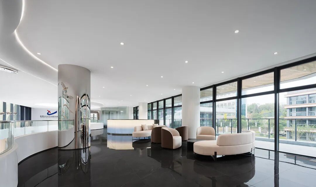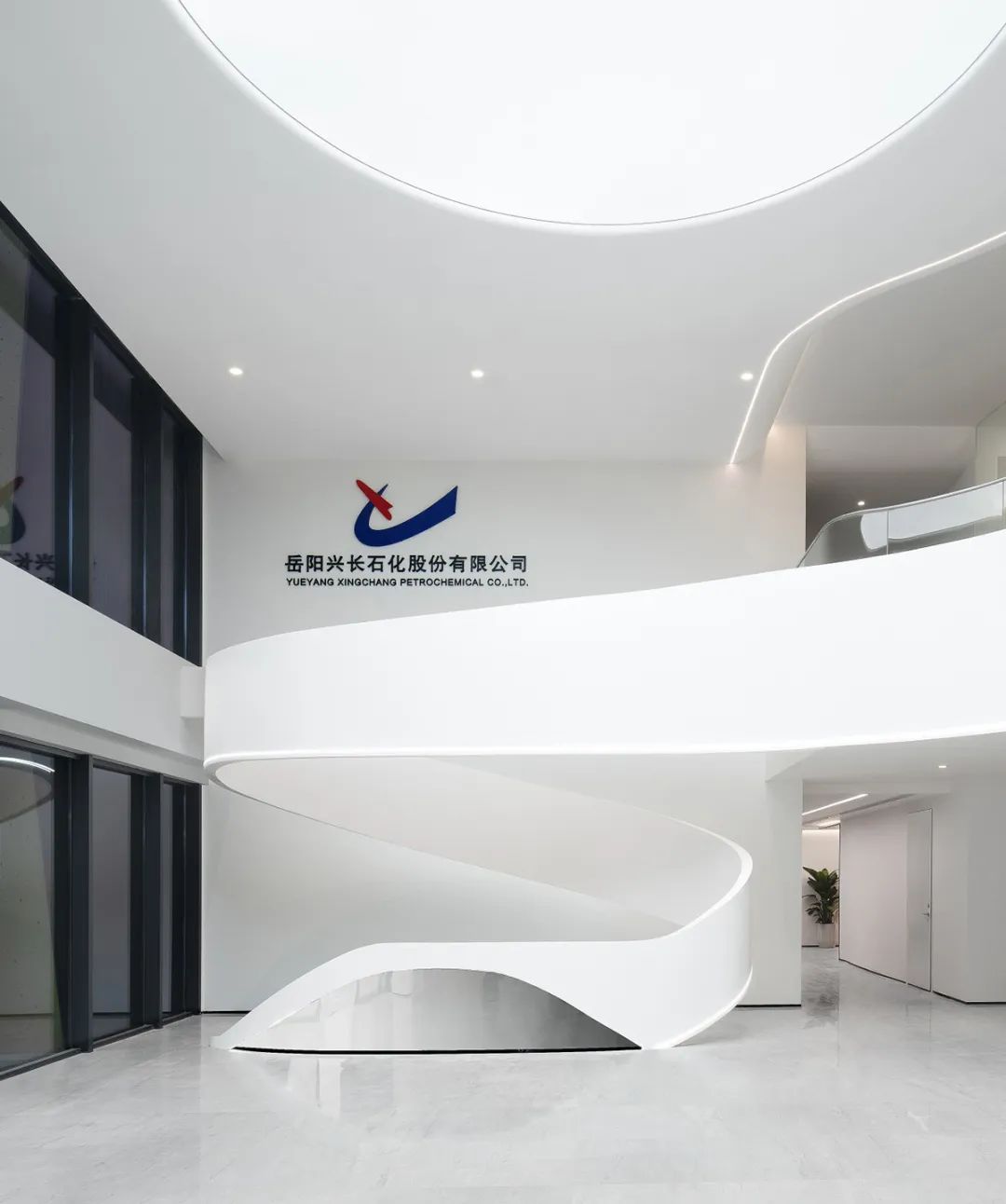In Yueyang, Hunan Province, China, a land steeped in a millennium of culture, Yueyang Xingchang Petrochemical Co., Ltd. presents us with a research and development center office space with a building area of 3000 square meters. As a comprehensive petrochemical enterprise integrating research and development, production, and sales, Yueyang Xingchang is not only the world's largest production base of ortho cresol per unit, but also the largest MTBE production base in the central and southern regions. Nowadays, this brand new research and development center takes "vibrant and diverse symbiotic and integrated office space" as its core concept, cleverly integrating the profound cultural texture of Yueyang Tower and Dongting Lake with modern office needs. By drawing on the element of "water", it has composed a beautiful symphony of "symbiotic and integrated" between architecture, landscape, and interior.