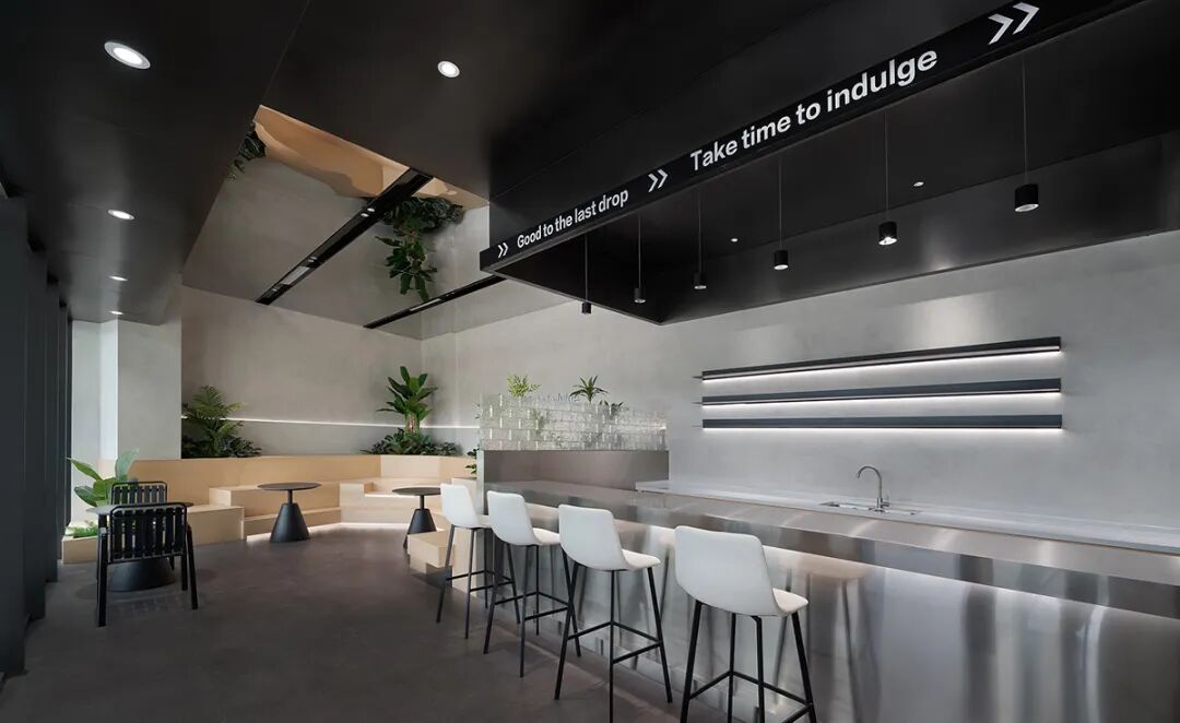 The design of the coffee bar aims to create a warm space and a future oriented lifestyle. Here, it is a place where social vitality occurs, placing one's body and mind here in the fast-paced era, gaining insight into the essence of life through complex narratives, immersing oneself in the multidimensional atmosphere of the present, and stimulating more possibilities for innovation.