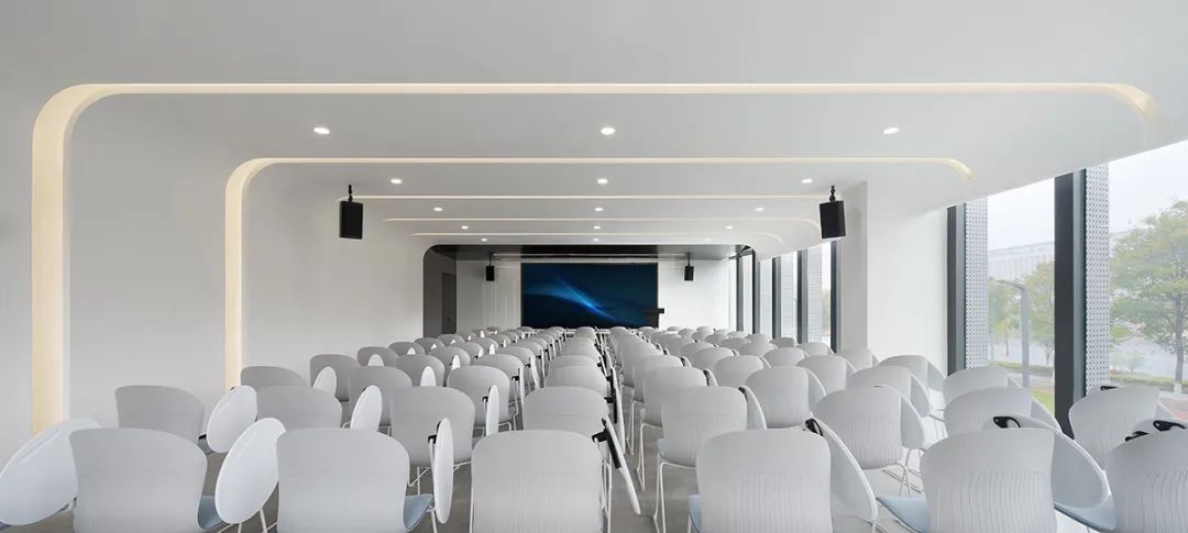 The training room is based on the core concept of "technology and futuristic", exploring and exploring the possibilities of space, and opening up new models for future office spaces. The room is equipped with an intelligent conference system, including a movable projection screen, high-definition cameras, and intelligent audio equipment. The seats in the training room are customized multifunctional chairs that can be used as regular seats or quickly converted into temporary workstations. The wall is made of materials with excellent sound absorption performance, ensuring training effectiveness while also providing a good acoustic environment for the space.
