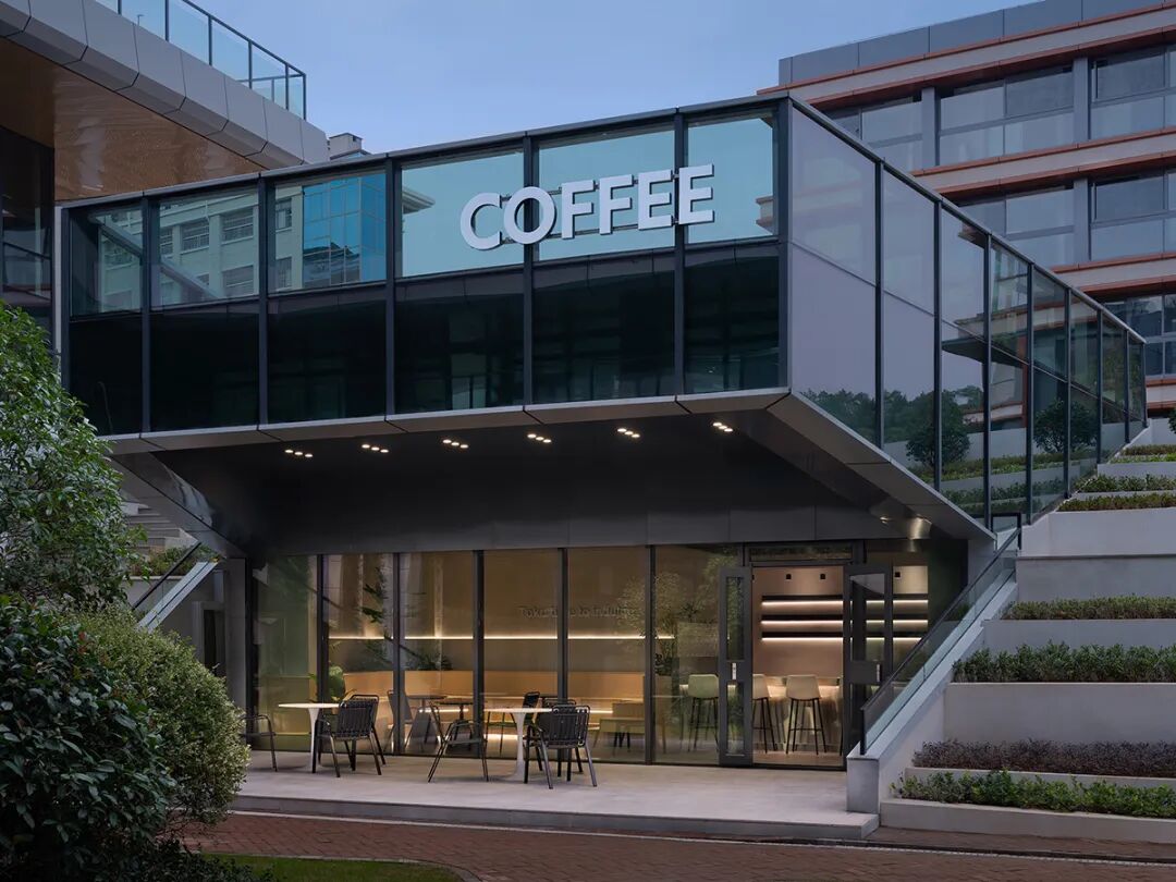 The core of the coffee bar is a customized 8-meter-long bar counter made of a whole piece of natural marble. The surface of the bar counter has been finely polished, presenting a unique texture and luster, as if the surface of Dongting Lake is shimmering in the sunlight. The bottom of the bar counter is supported by a stainless steel frame, which ensures the stability of the structure and gives the space a modern feel. The bar is equipped with professional coffee equipment and intelligent ordering system to meet the various needs of employees and visitors.