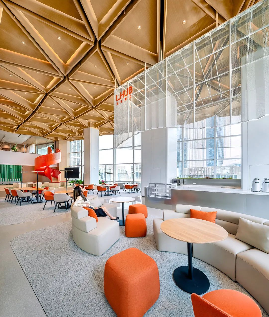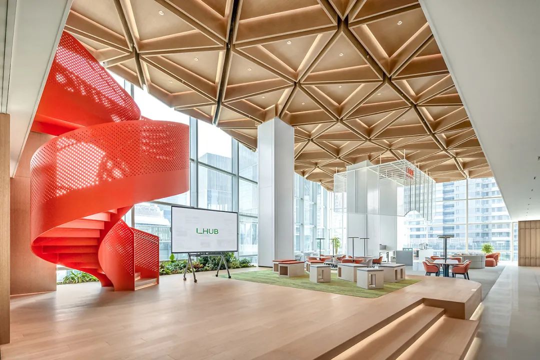 LHUB has redefined the standards for office spaces in Shanghai through forward thinking office environment design and innovative office furniture applications. The project is based on ecological settlements and combines flexible space and sustainable technology to provide efficient, healthy, and highly recognizable office solutions for Zhangjiang Science City enterprises, empowering the development of the science and technology innovation ecological chain.