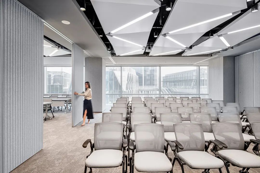 Acoustic control system (sound-absorbing ceiling, wall) and intelligent storage cabinets and other details optimize the office experience and health comfort.