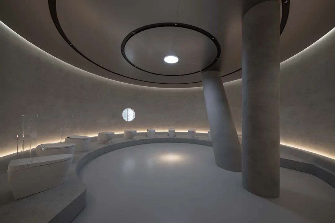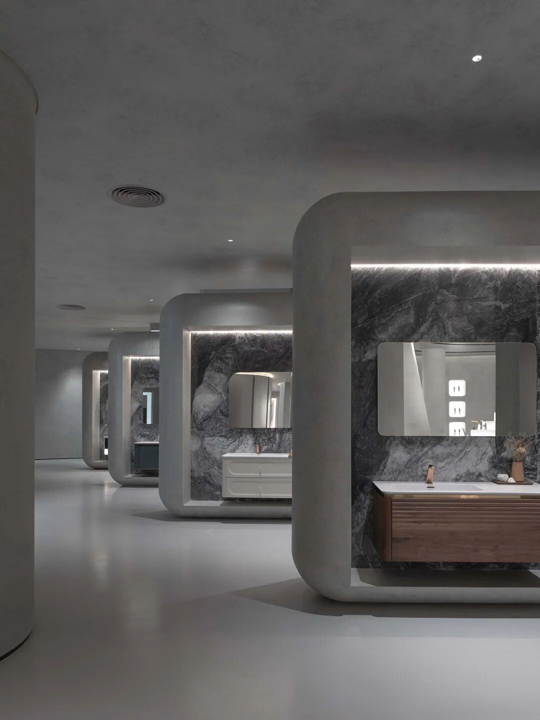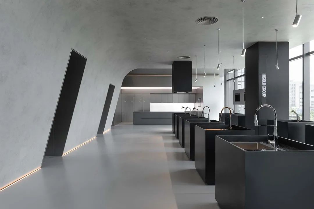 This futuristic sense of technology is not an empty form of gaming. When the sink faucets are arranged in an orderly manner in an art museum display, when the cabinet hardware evolves into exquisite collections in a symmetrical slope, daily home scenes are refined into artistic expressions. The artistic sense permeates the space through a three-layer narrative system: the installation art of "Interstellar Medium" at the entrance is composed of 2000 pieces of 316 stainless steel thin sheets, suspended in the air through magnetic levitation technology, and presented in a nebula like flowing form by the gentle breeze; The "Time Slice" light and shadow installation in the atrium uses programmable LED and mirror stainless steel reflection to project the evolution trajectory of hardware products from raw materials to finished products on the wall; The "Material Poetics" series at the corner of the corridor combines stainless steel etching technology with laser projection, using dynamic images to tell the "past and present" of each metal. E Studio seamlessly integrates the office environment with exhibition hall functions. The atrium can serve as both a leisure area and a venue for art installation exhibitions, allowing commercial spaces to transcend transactional attributes and become cultural venues that inspire inspiration.