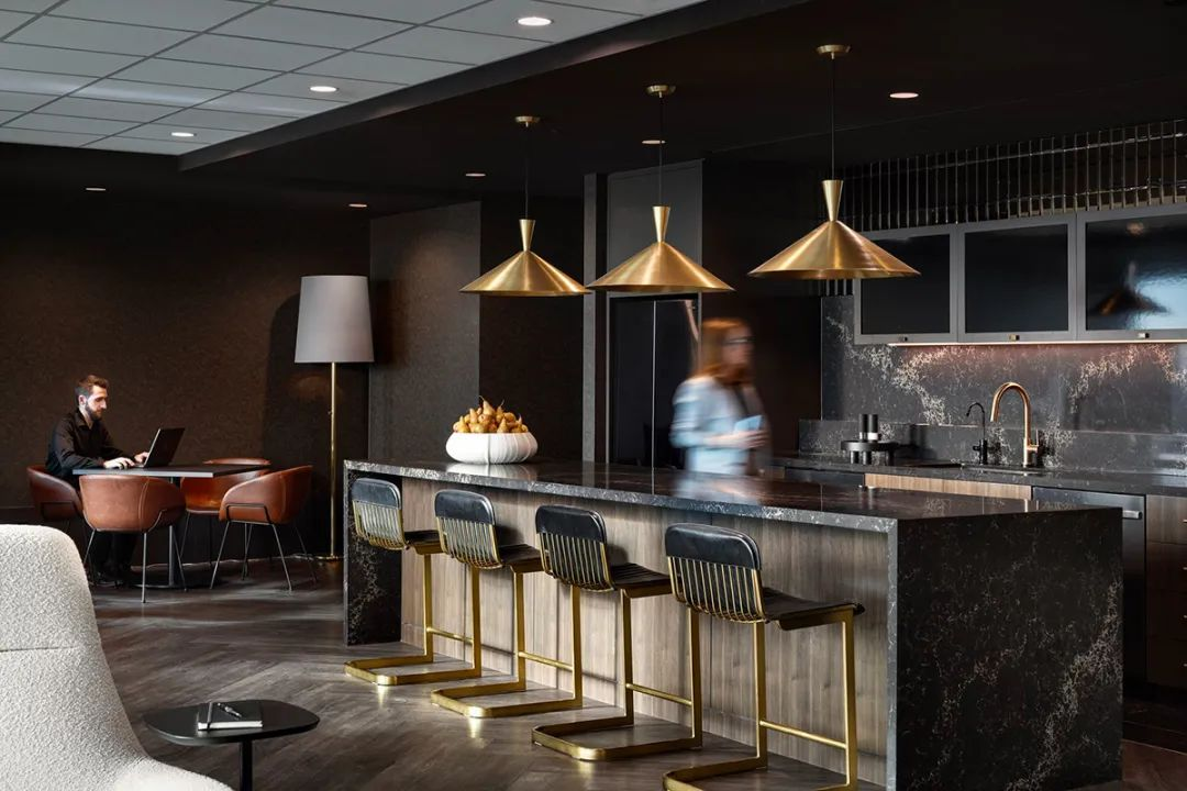 加拿大顶尖律所Stikeman Elliott携手Kasian Architecture设计团队,在卡尔加里银行家大厅(Bankers Hall)41至42层打造了总面积达3,865平方米的全新办公空间。此次搬迁与形象升级工程,旨在突破传统律所的刻板印象,通过酒店与高端住宅设计美学的创新融合,构建一个既彰显企业卓越声誉,又能吸引员工重返办公现场的温馨舒适环境,完美诠释了"专业之中见温度"的空间哲学。