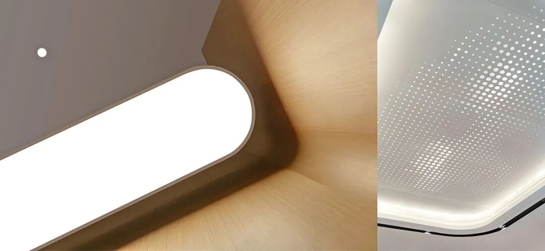 推开玻璃门,定制的白色大理石前台首先映入眼帘。不同于传统棱角分明的设计,这块长达3.2米的前台采用对称圆角造型,边缘半径精确到5厘米的弧形处理,既呼应了华为品牌的科技基因,又通过柔和的边界消解了空间的压迫感。天花垂下的弧形灯带与前台造型形成上下呼应,而家具定制的精妙之处在于:前台内部暗藏的无线充电模块和嵌入式显示屏,将接待功能与科技展示无缝融合,这正是"科技未来"在办公家具上的具象化表达。