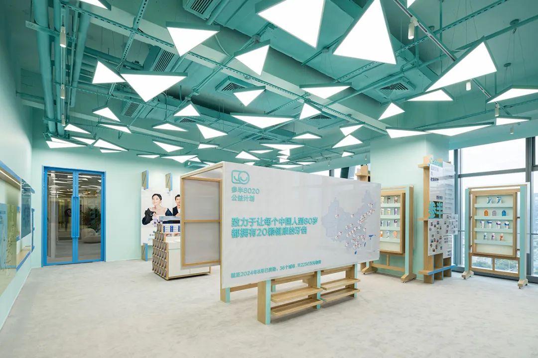 关键词:办公家具,定制家具,商业环境设计,口腔护理,深圳总部,品牌文化,未来适应性,模块化设计,色彩空间搭配