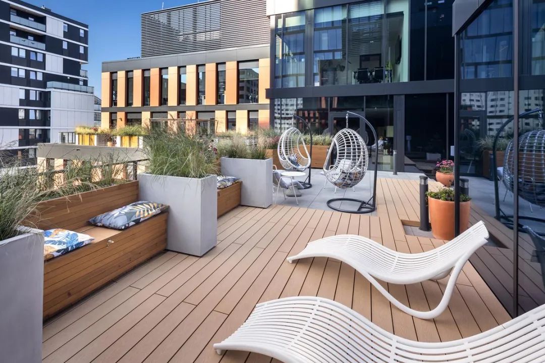 这些设计巧思与定制家具系统共同构建了"活力生态链":当员工从专注工作区移步至协作区时,家具高度从75cm过渡到45cm,身体姿态的变化自然触发思维模式的转换;露台区域的定制高脚桌与绿植墙形成微型创意实验室,新鲜空气与自然光线成为创新的催化剂;甚至茶水间的定制吧凳都设计成可旋转款式,鼓励偶然相遇中的思想碰撞。