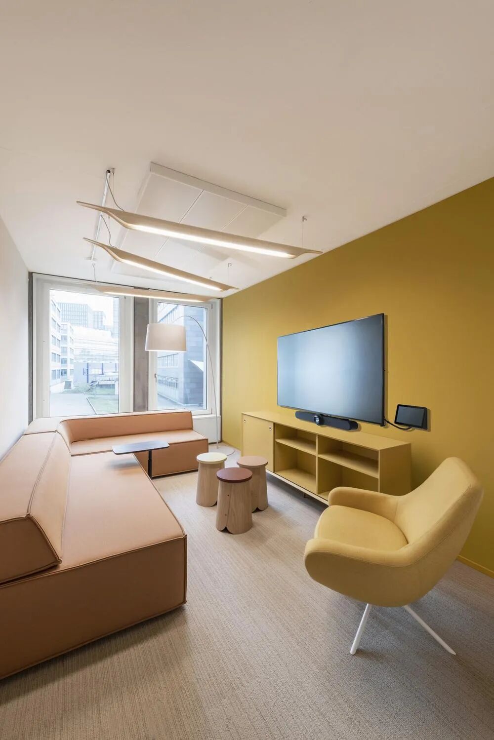 Eraneos Group在合并与品牌重塑后,摒弃传统总部设计,打造开放协作的办公环境。员工可自主选择工作区域,打破部门界限,促进跨团队交流。这种设计不仅满足疫情后智慧办公需求,更通过定制家具与灵活布局,强化企业文化的凝聚力。