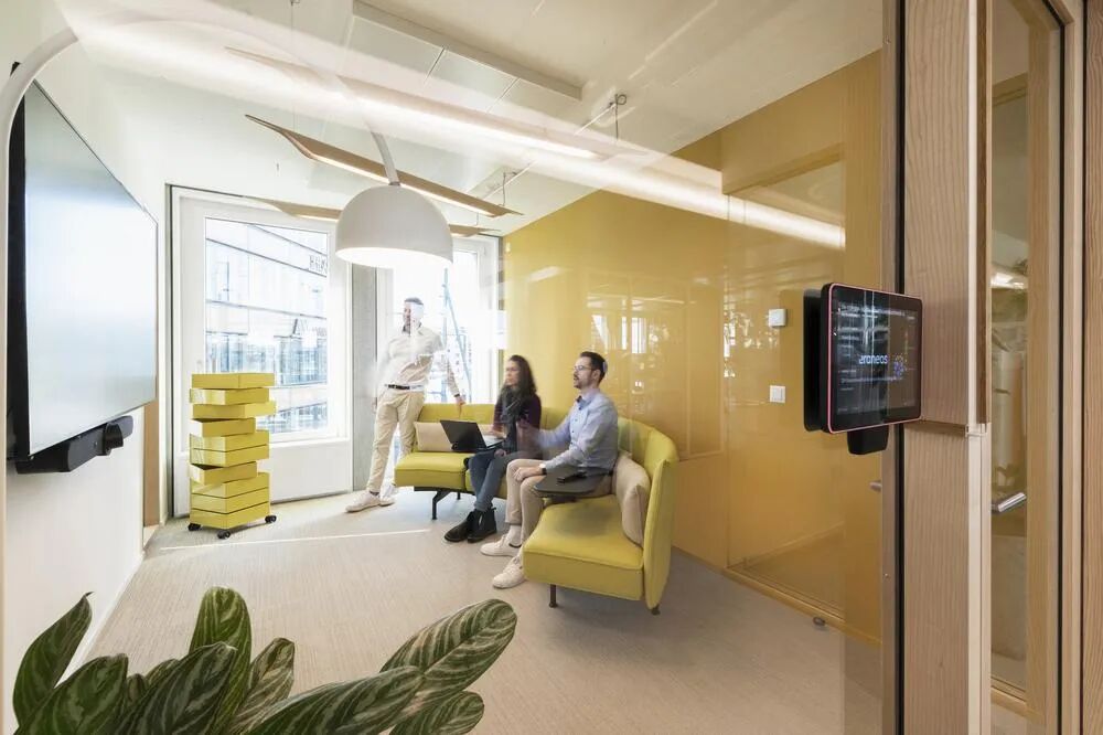 “办公位传感器与会议室预订系统确保空间高效利用,而源自Eraneos企业色彩的柔和色调,则营造出充满活力的工作氛围。” —— CHRISTINA STEIN, 项目设计负责人