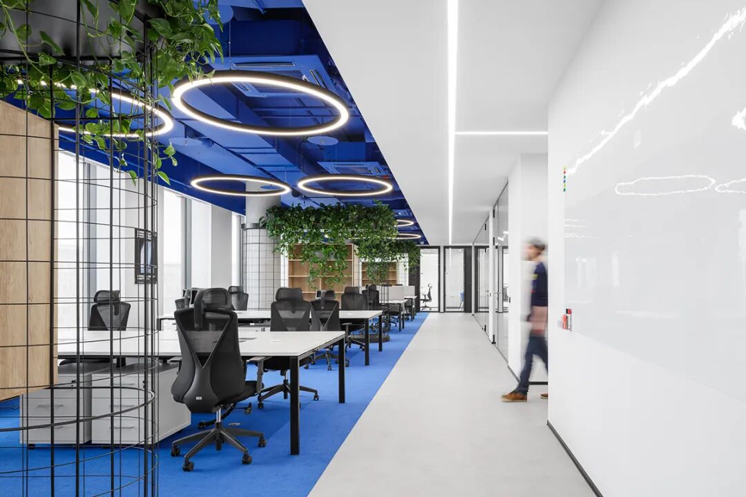 此外,绿植藤蔓的融入为冷静的蓝白空间注入生机,提升了环境的舒适度与愉悦感。研究显示,良好的办公环境设计能显著提升员工的幸福感与生产力——在本案中,通过对色彩、光线、家具与布局的整体把控,不仅塑造了一个时尚唯美的美学空间,更构建了一个能激发灵感、提升效率、增强归属感的办公场所。对于 INNOTECH 这样的科技企业而言,这处空间无疑成为了支持其创新文化与持续发展的重要基石。