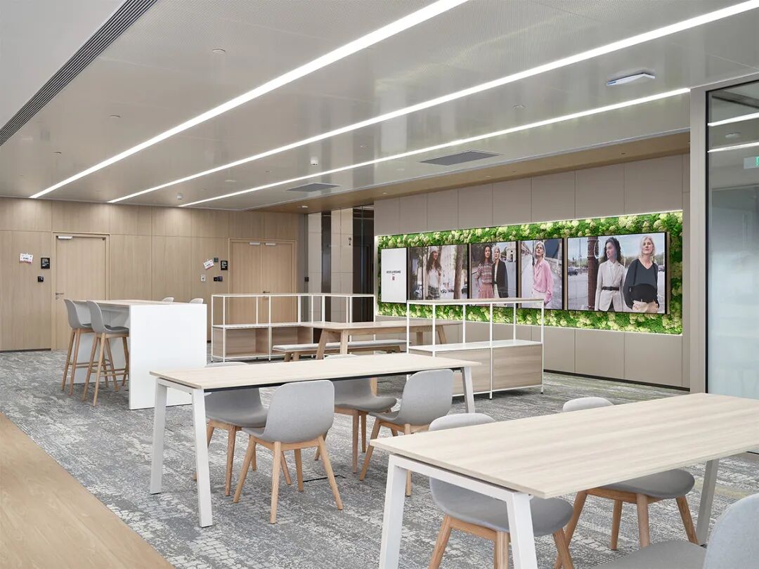 可持续不仅体现在环保材料的选用与节能设计,更融于视觉与体验的每一处:充足的采光、随处可见的绿植、可视化空气净化设备、吸音降噪的会议墙面……这些细节共同营造出一种关注身心健康的办公氛围,悄然呼应着品牌对“人”与“环境”的双重责任。