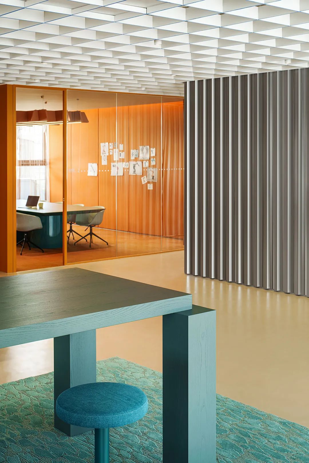 空间设计通过巧妙的对比营造动态氛围。模块化天花板体现秩序感,而下方的功能区错落有致,激发探索欲。酒店风格的办公家具和温馨装饰打破了传统办公的单调,兼具专业性与舒适感。材料选择保留天然纹理,色彩方案融合活力与沉稳,彰显出办公环境设计的双重属性——整洁而灵活,技术化却不失人性。