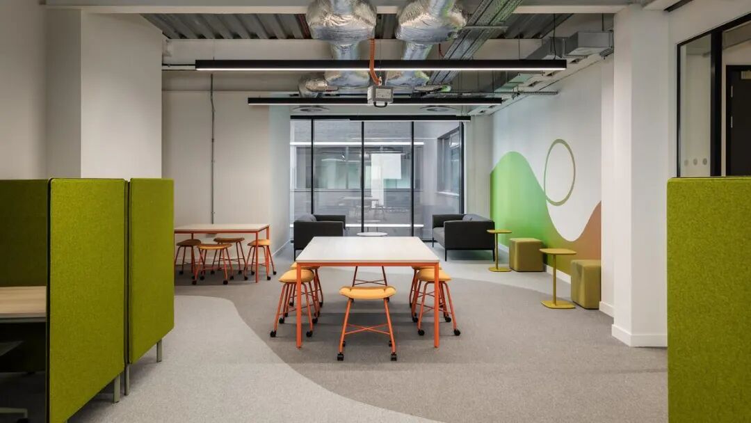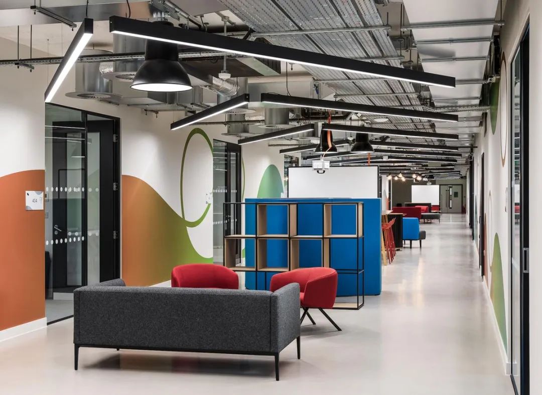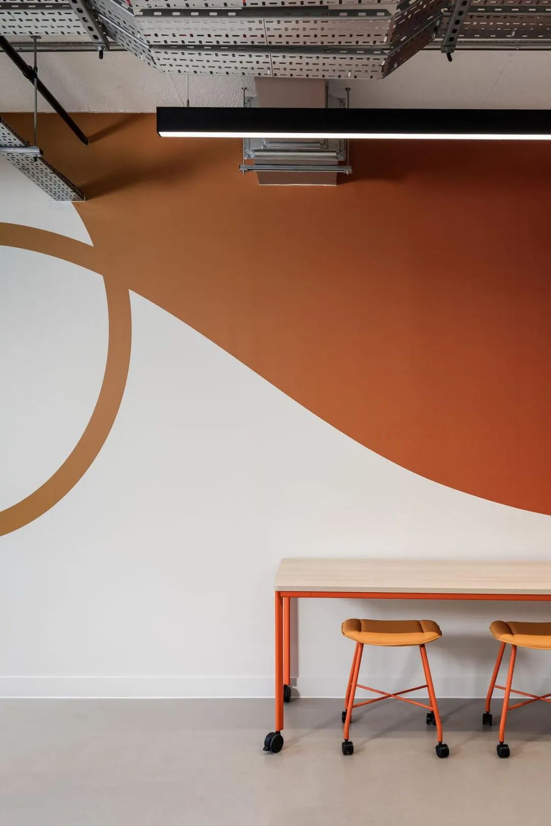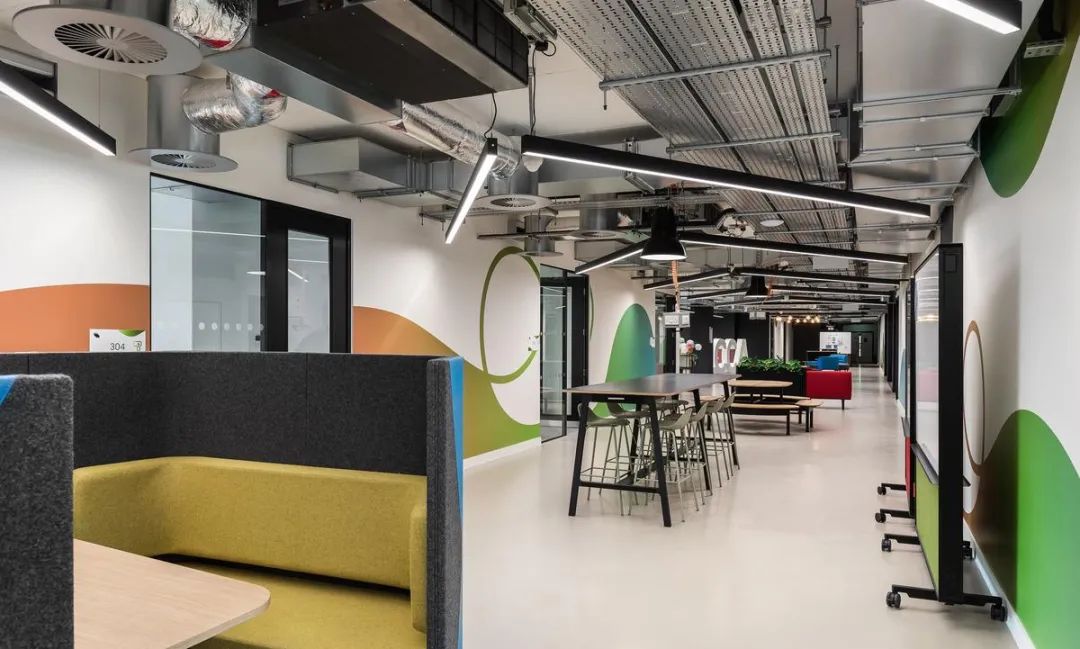 在连接走廊区域,设计团队设置了带有小型屏风隔断的两人座,适合学生休闲交流或自习,体现出对大学校园环境设计中人性化细节的关注。