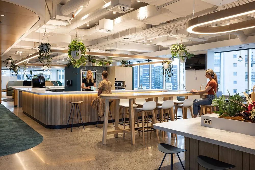 设计灵感源自新西兰"kiwi bach"海滩小屋,强调室内外流动与自然光利用。18层空间通过落地窗引入自然光,原木色办公家具搭配绿植,营造开放宁静氛围。摒弃传统格子间,采用协作区与独立工作区结合的灵活布局,使办公环境同时满足专注与互动需求。