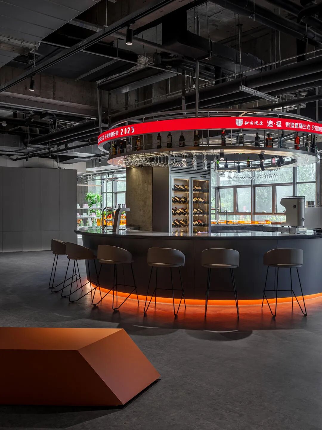 Boundless live streaming venue: The circular metal mesh selection area and semi open facade design break the traditional boundaries of live streaming rooms, allowing live streaming behavior to penetrate the entire space and increasing traffic conversion rates by 300% (according to internal test data).