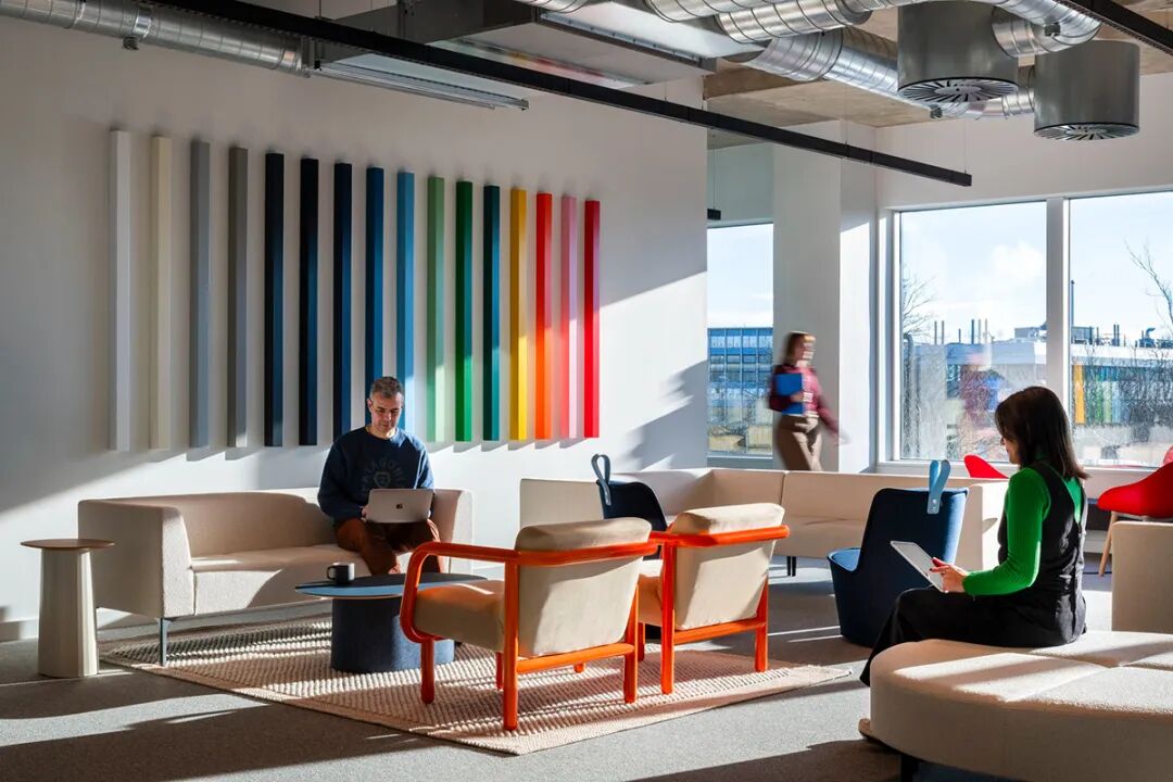 “我们希望客户看到的不是孤立的产品,而是它们在真实办公环境中的‘工作状态’。”项目主管Nadean McNaught曾在采访中强调。这种“场景化展示”策略让总部同时承担起北部展厅的功能:当客户参观时,能直观看到NaughtOne产品如何与MillerKnoll集团其他品牌家具(如Herman Miller的办公椅)搭配,形成从“设计理念”到“落地效果”的完整叙事链。