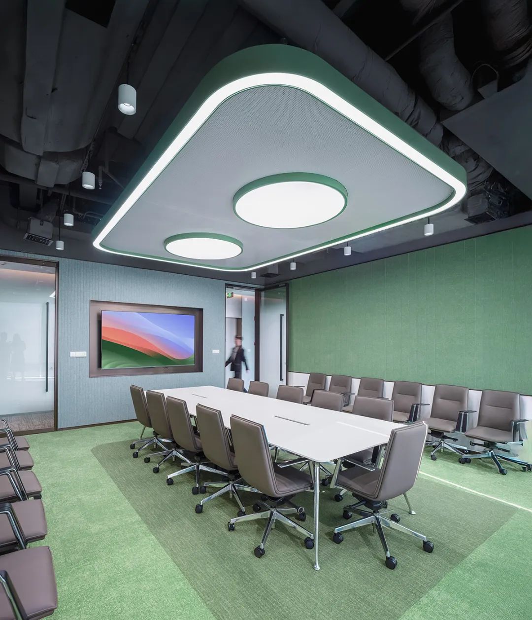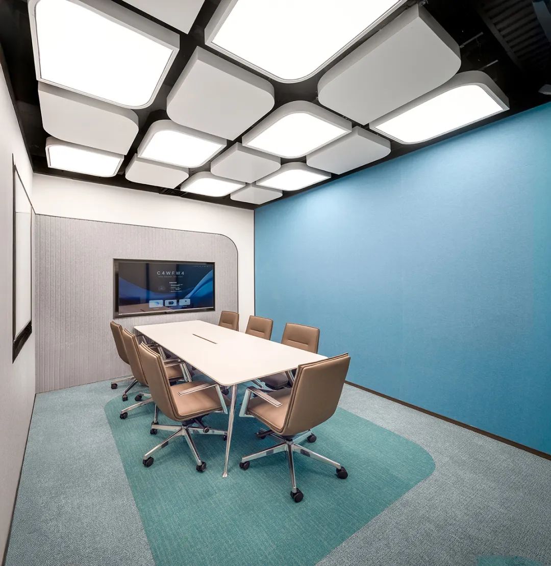 627㎡会议室矩阵:涵盖10-140人规格,通过色彩主题与智慧办公技术,提升上海写字楼办公室的会议效率。