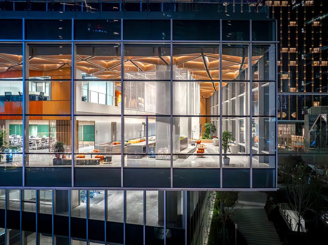 采用微孔铝板等环保材料,结合大窗采光设计,降低能耗,提升上海写字楼可持续性。