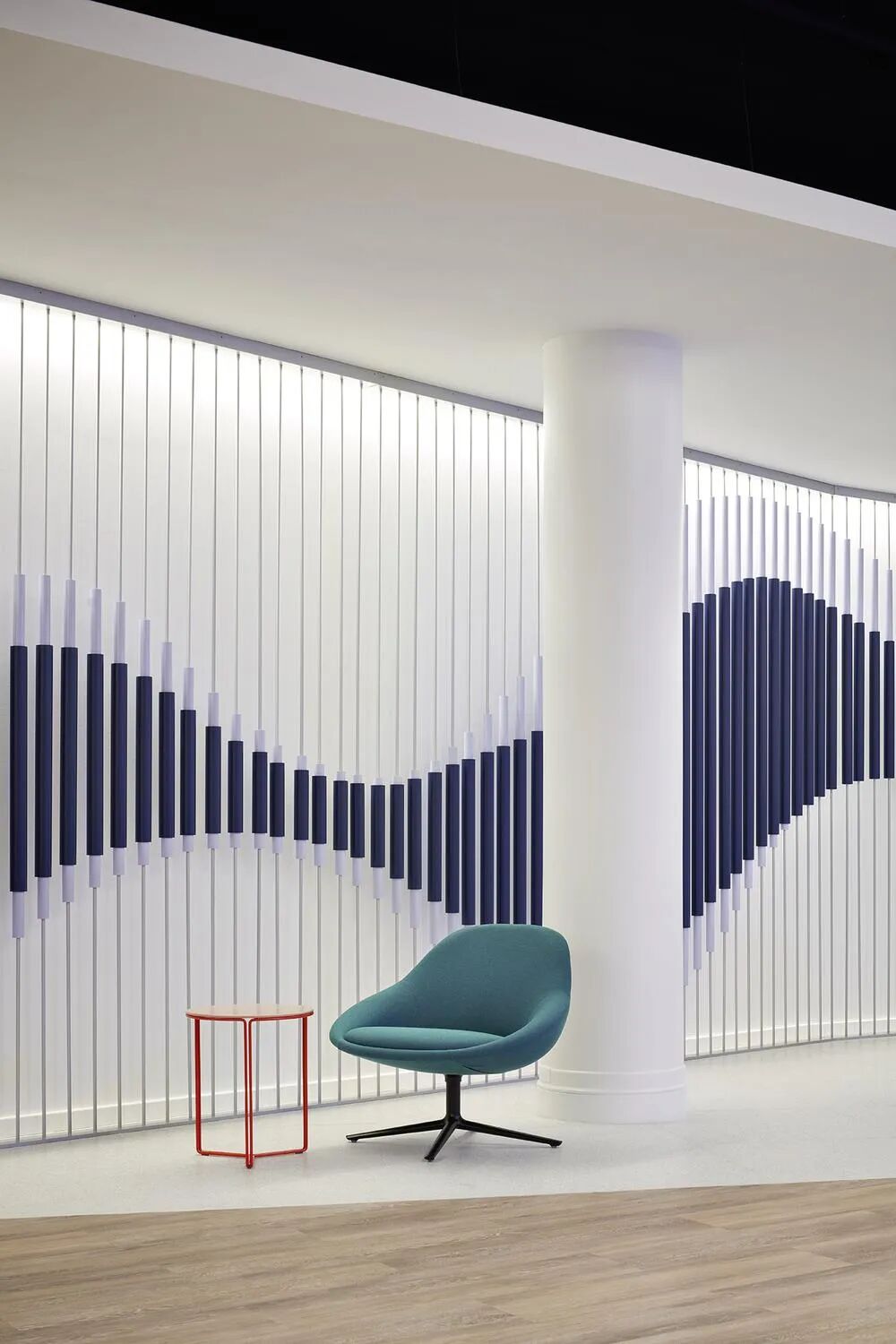这种"环境即品牌"的理念贯穿整个办公空间。历史建筑的厚重感与现代办公的灵动性在此达成奇妙平衡:原始木梁下悬挂着可变色LED灯带,复古铸铁楼梯旁摆放着模块化协作沙发,而原本用于展示奢侈品的橱窗区域,被改造成了开放式电话亭——这些由再生材料定制的隔音舱,既保留了建筑的历史肌理,又满足了混合办公模式下"随时需要安静空间"的实际需求。