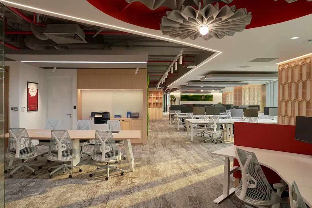 Unispace以创新设计闻名,AVT International则擅长将概念落地,两者的合作成为项目成功的关键。Unispace负责办公环境设计的创意构思,而AVT International则确保每一个细节——从文化雕刻到办公家具选型——都精准呈现。这种“设计+执行”的黄金组合,让武田的愿景从图纸变为现实。
