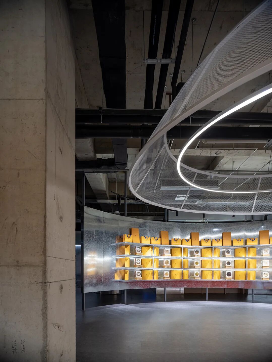 Boundless live streaming venue: The circular metal mesh selection area and semi open facade design break the traditional boundaries of live streaming rooms, allowing live streaming behavior to penetrate the entire space and increasing traffic conversion rates by 300% (according to internal test data).