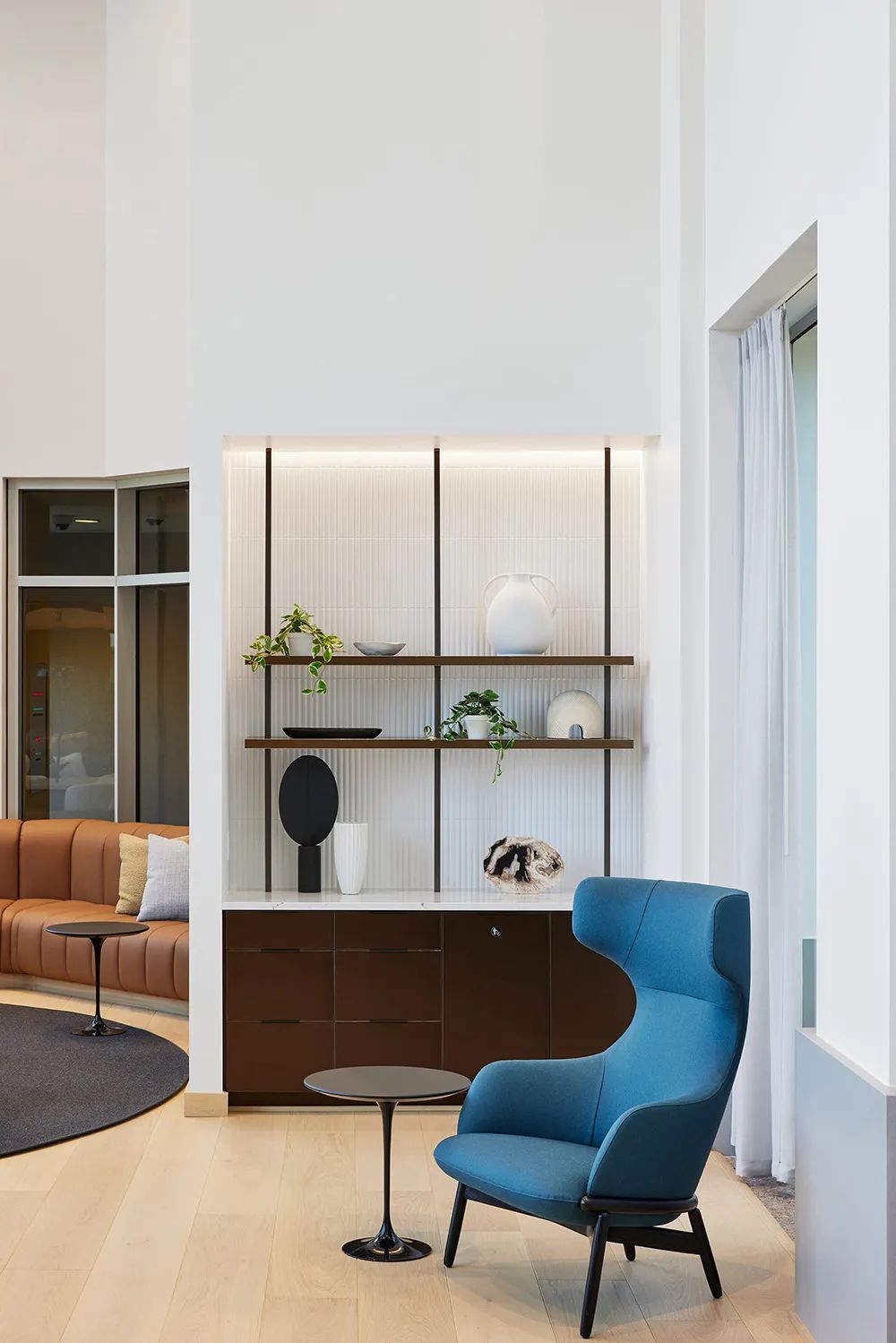 Space Purification: Highlighting the artistic value of historical materials through subtractive design, creating an office texture that conforms to modern aesthetics