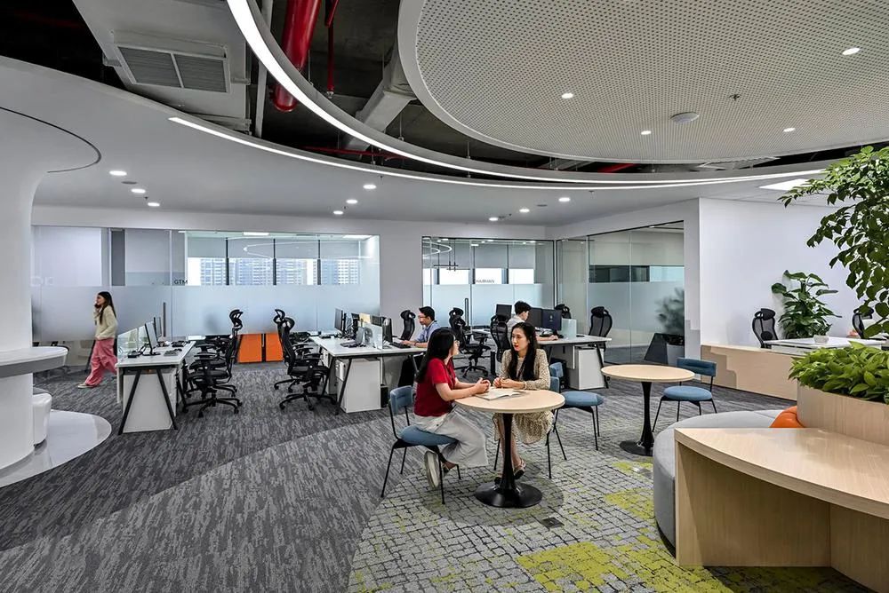 Open floor plan promotes cross departmental collaboration, paired with ergonomic intelligent office equipment, balancing work efficiency and comfort requirements.