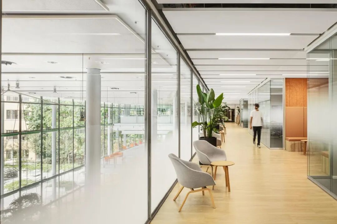 The building has obtained WiredScore Platinum certification and Leed Core&Shell Platinum certification, and plans to compete for Leed v4 Ebom certification. Using FSC certified wood, recycled metals, and low VOC coatings, the intelligent lighting and air conditioning system reduces energy consumption by 30%, and the bio friendly design improves air quality. The office furniture echoes the brand's "people-oriented" mission with environmental protection concepts.